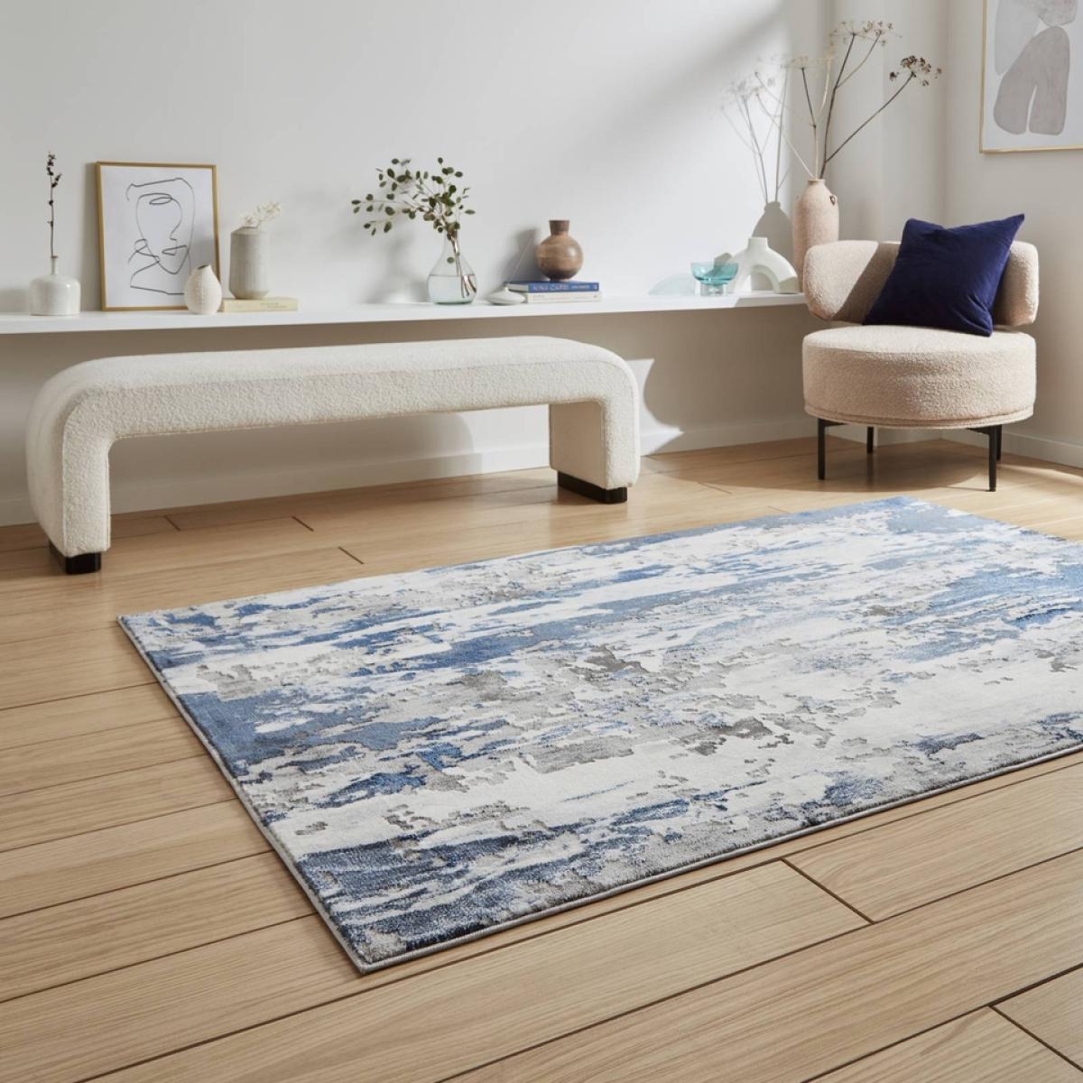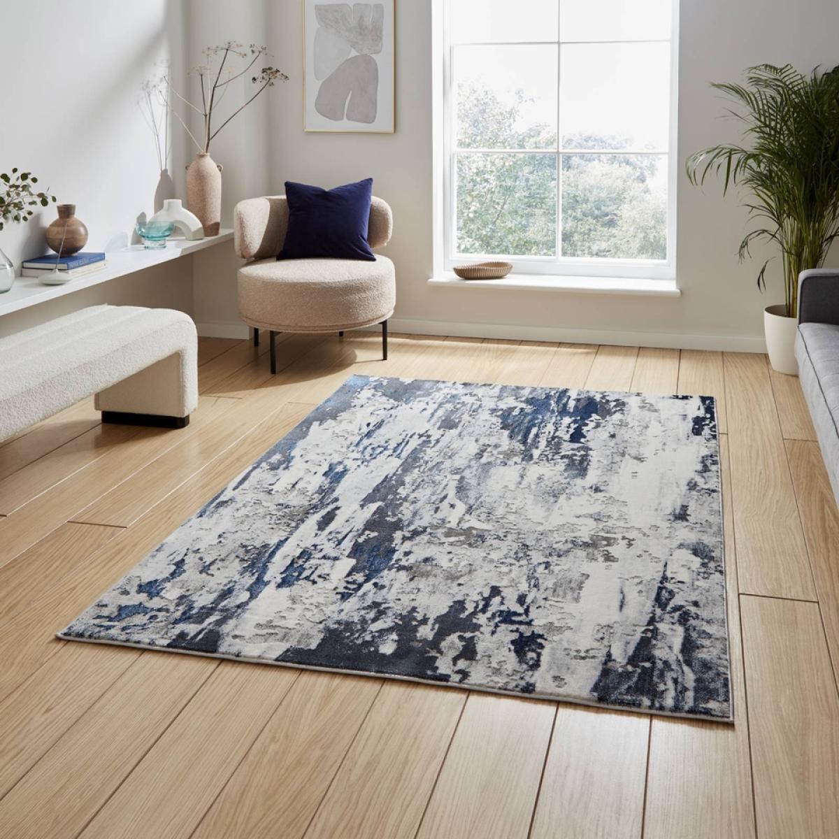 The Rome Abstract Metallic Rug in grey and navy is the perfect addition to add a touch of contemporary elegance to your living room or bedroom. Measuring 200x290cm, this rug is the perfect size to enhance your space without being too overwhelming.