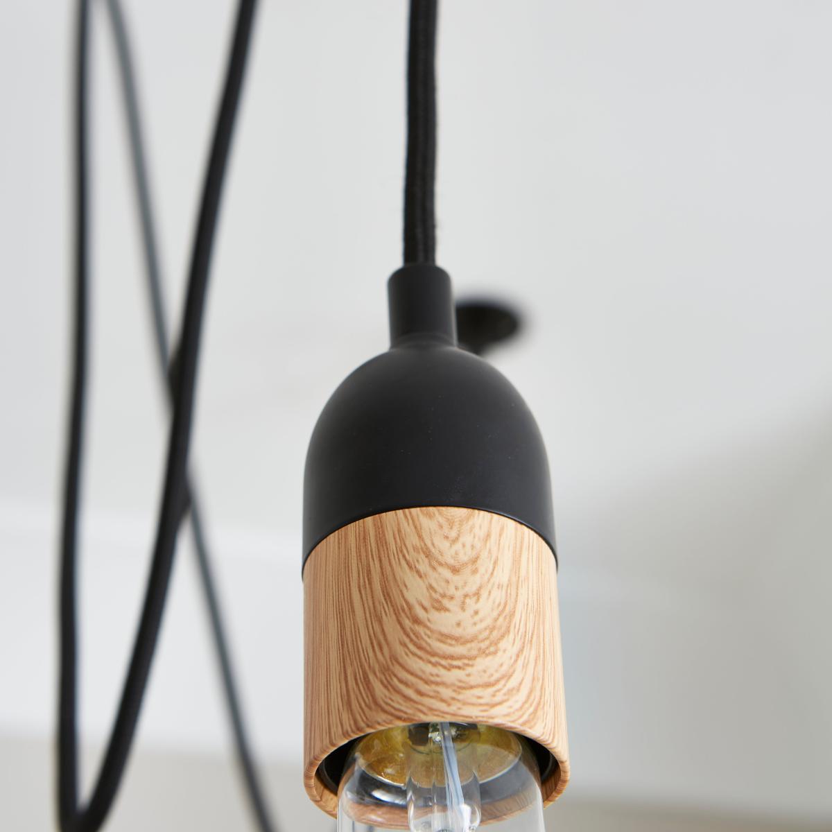 I love this ceiling light for its modern industrial aesthetic and versatile design. The black spider fitting adds a contemporary edge that works well in urban, minimalist, or eclectic interiors. It’s particularly effective over dining areas, kitchen islands, or even in open-plan living spaces where you want an eye-catching feature without overwhelming the room. Practical styling tips include pairing it with sleek, filament-style bulbs for a warm glow or darker pendant shades for a more subdued mood. Keep the surrounding decor simple and let the hanging lights be a statement piece; they lend a designer touch while remaining functional.