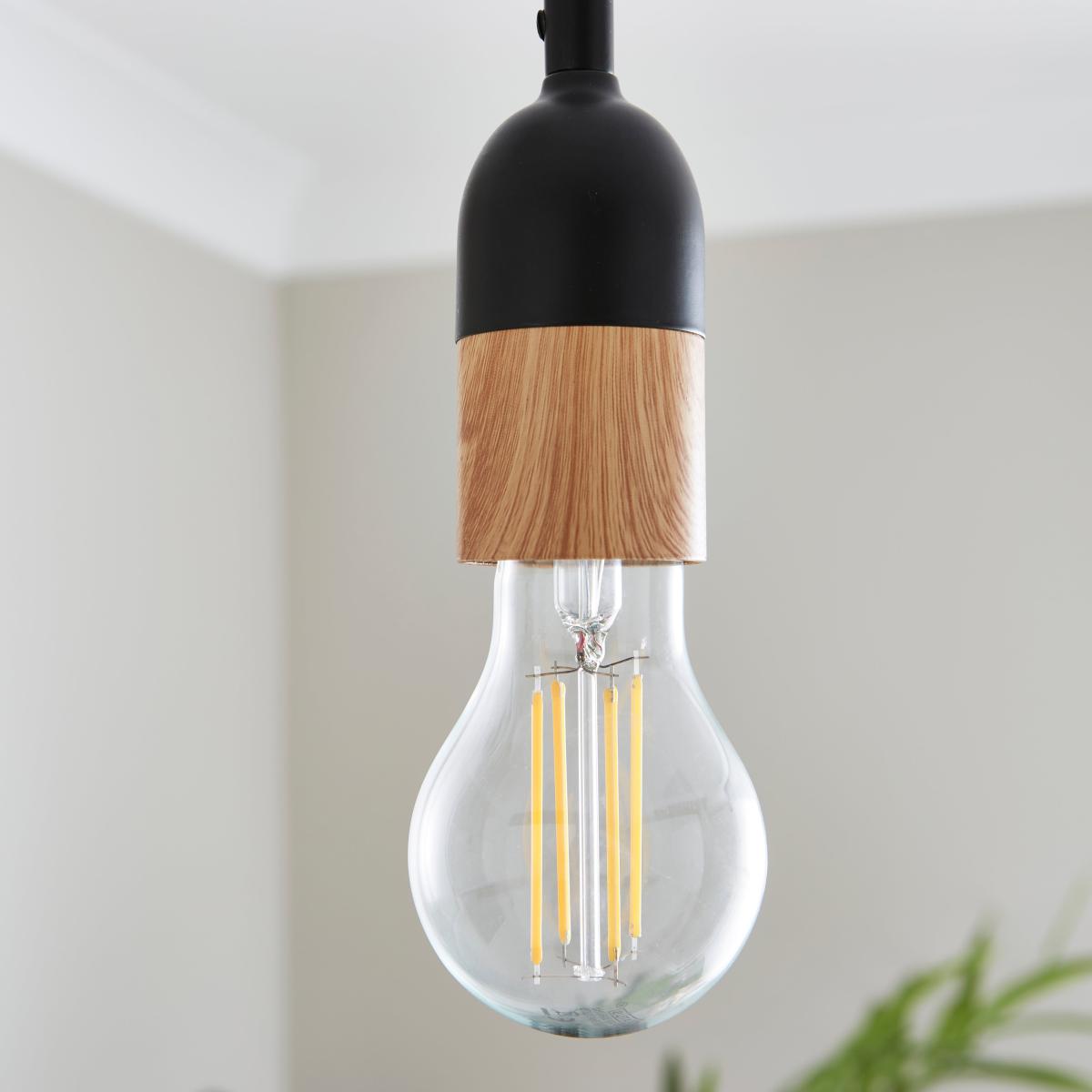 With its three adjustable flex heights, this fitting offers customisable installation to suit your space perfectly. The wood effect detailing adds a touch of natural beauty and warmth to your decor. With its dimmable feature, you can effortlessly create the desired ambiance for any occasion whether you prefer it dimmed or bright. Complete the cohesive look by exploring our range of matching family items, available to purchase separately.