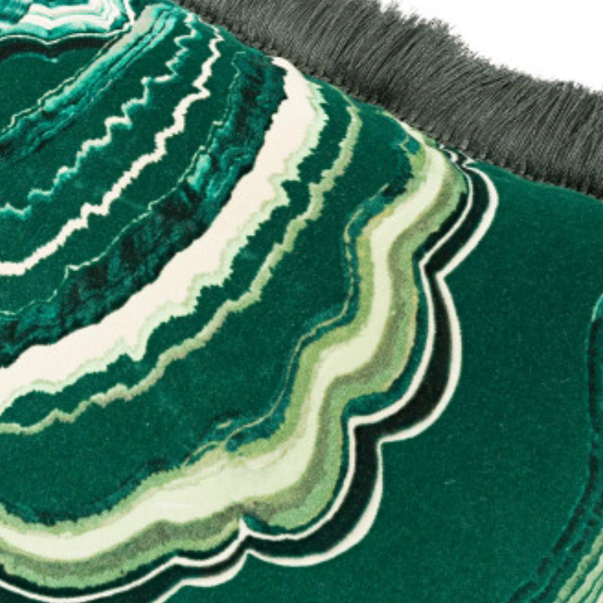 A sumptuous, deep pile velvet cushion featuring a hypnotic display of agate inspired swirls that exude a psychedelic sophistication. Bold and beautiful, a cut ruche fringe adds the final finishing flourish.