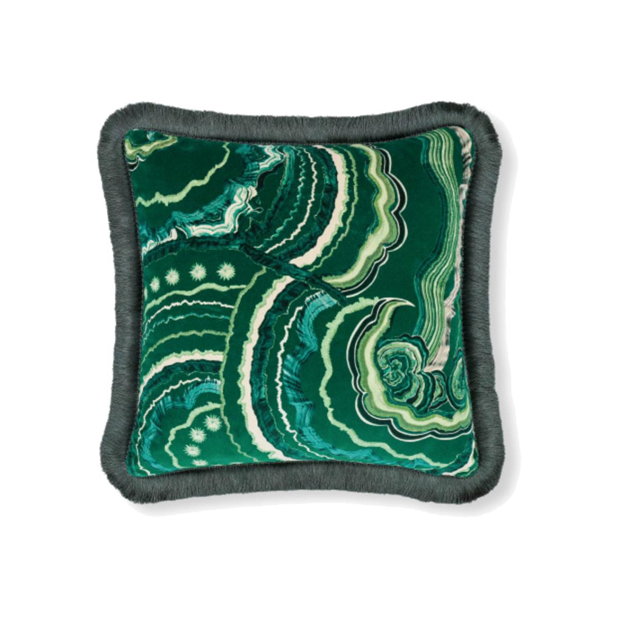 I love this cushion for its striking malachite-inspired pattern and bold colour palette, which instantly adds a touch of sophistication and visual interest to any space. It works particularly well in contemporary or eclectic interiors, where it can serve as a statement piece on a neutral sofa or bed. Practical styling tips include pairing it with other textured or patterned cushions to create depth, or using it to inject a splash of colour into more subdued schemes. Its size makes it versatile for both sofa and bed styling, bringing a fresh, luxurious feel with minimal effort.