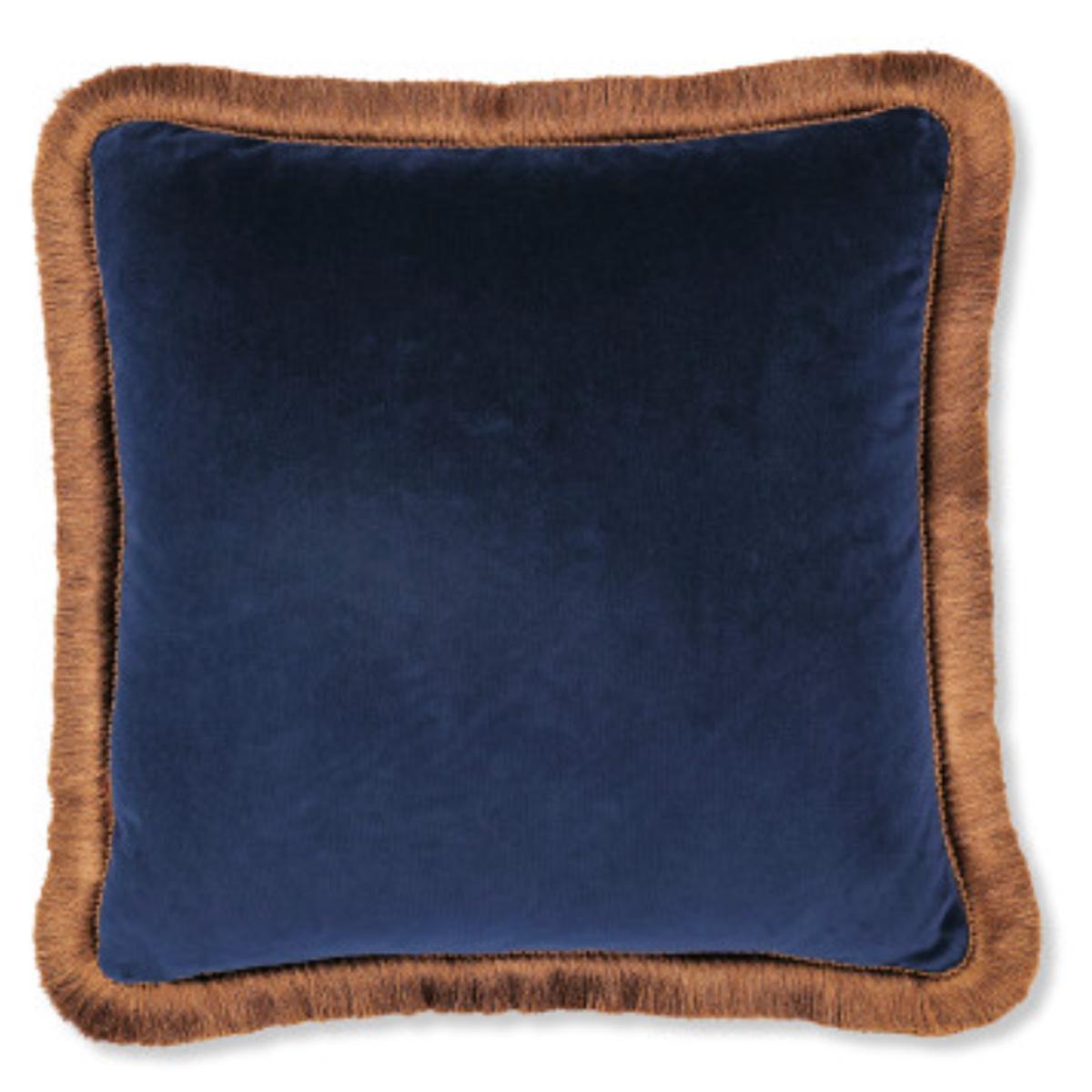 I love this cushion for its rich Indigo Sky shade combined with the luxe feel of the textured fabric and the contrasting trim. It works particularly well in eclectic or classic interiors that benefit from accents of colour and tactile interest. It’s versatile enough to dress up a neutral sofa or add depth to a patterned armchair. Practical styling tips include pairing it with other cushions in complementary textures or tones, or layering it with throws for a cosy, inviting look. Its size makes it an ideal option for both scatter cushions and standalone statement pieces on larger sofas or beds.