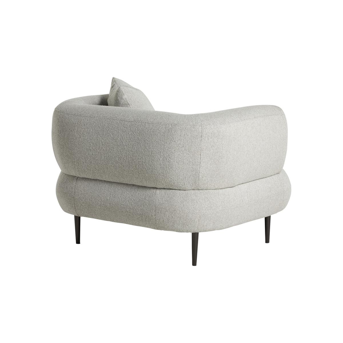 I’m a big fan of the Romolo chair for its soft, rounded silhouette and tactile boucle fabric - it instantly adds both comfort and curator-style interest to a room. The slim, black metal legs lift the design, making it equally at home in a Scandi-inspired scheme or a more contemporary living space. To style it, pair with a slim side table in natural wood or matte metal to echo the legs and keep surfaces uncluttered. Add a contrasting lumbar cushion in a rich jewel tone or patterned weave to break up the neutral upholstery. Position it near a tall floor lamp and layered rugs for a cosy reading nook, or use two either side of a fireplace to balance symmetry in a modern lounge.