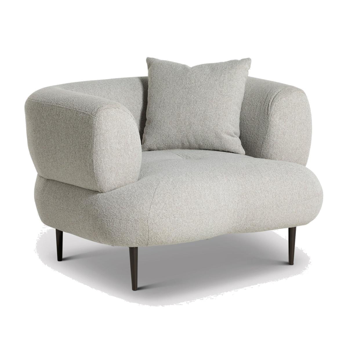 Introducing the Romolo Armchair, where comfort meets elegance effortlessly. With its curvaceous design and minimalist aesthetic, it's a statement piece for any room. Adorned in a neutral fabric, it exudes timeless appeal. Supported by sleek dark wooden legs, it offers both style and stability. Equipped with sprung seat suspension, it ensures unparalleled relaxation. Transform your space with this sophisticated and inviting armchair.