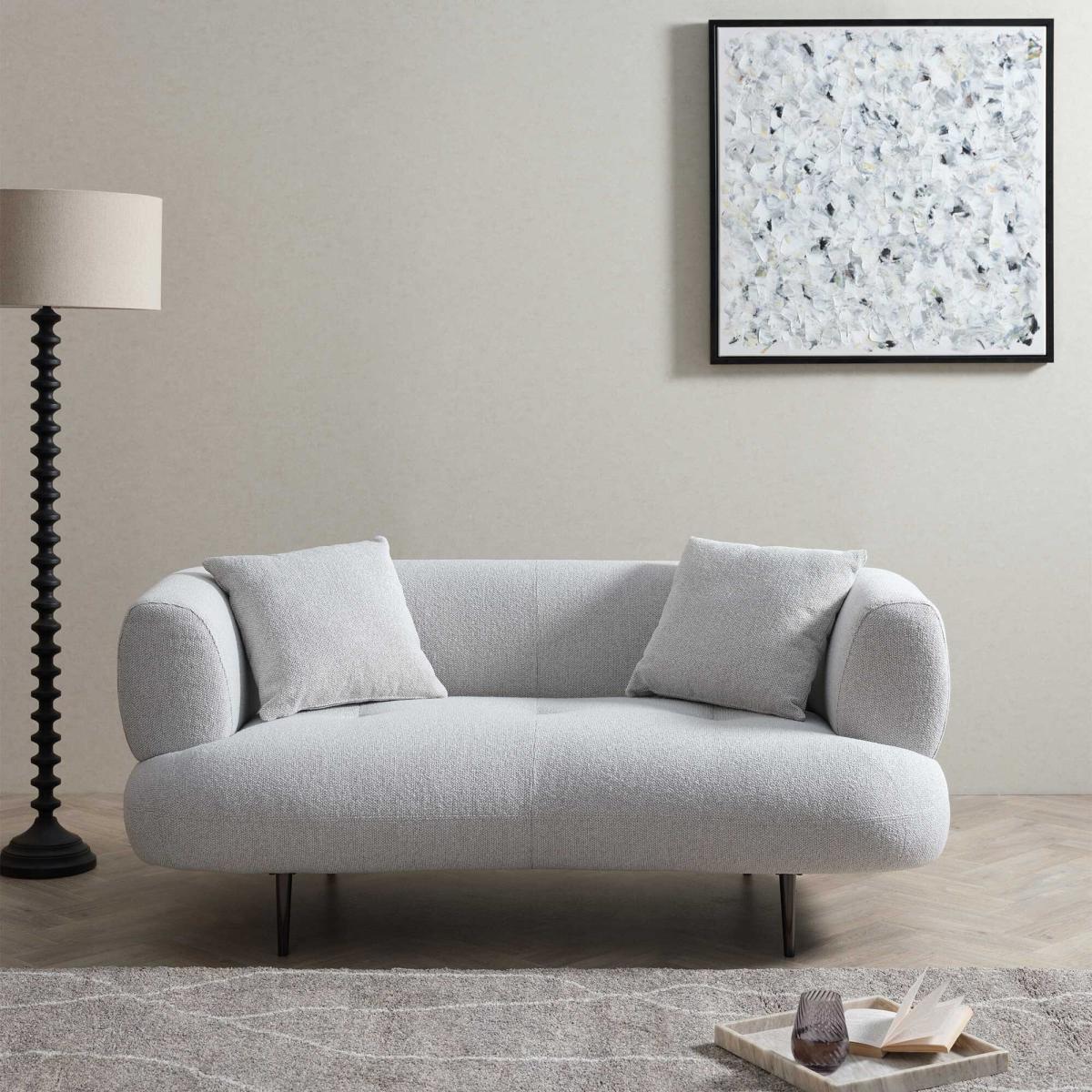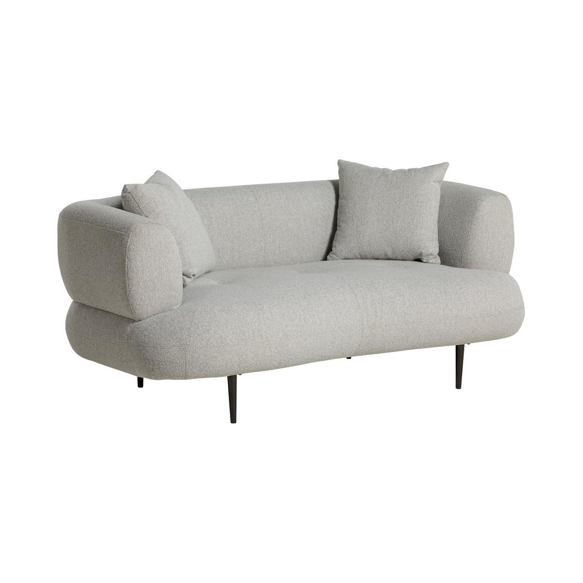 Discover the Romolo Loveseat, where style meets comfort seamlessly. Its curvaceous design and minimalist allure exude sophistication. Upholstered in a neutral fabric, it adds timeless charm to any space. Supported by sleek dark wooden legs, it's as sturdy as it is stylish. Featuring sprung seat suspension, relaxation is taken to new heights. Redefine your living room with this chic and cosy addition.