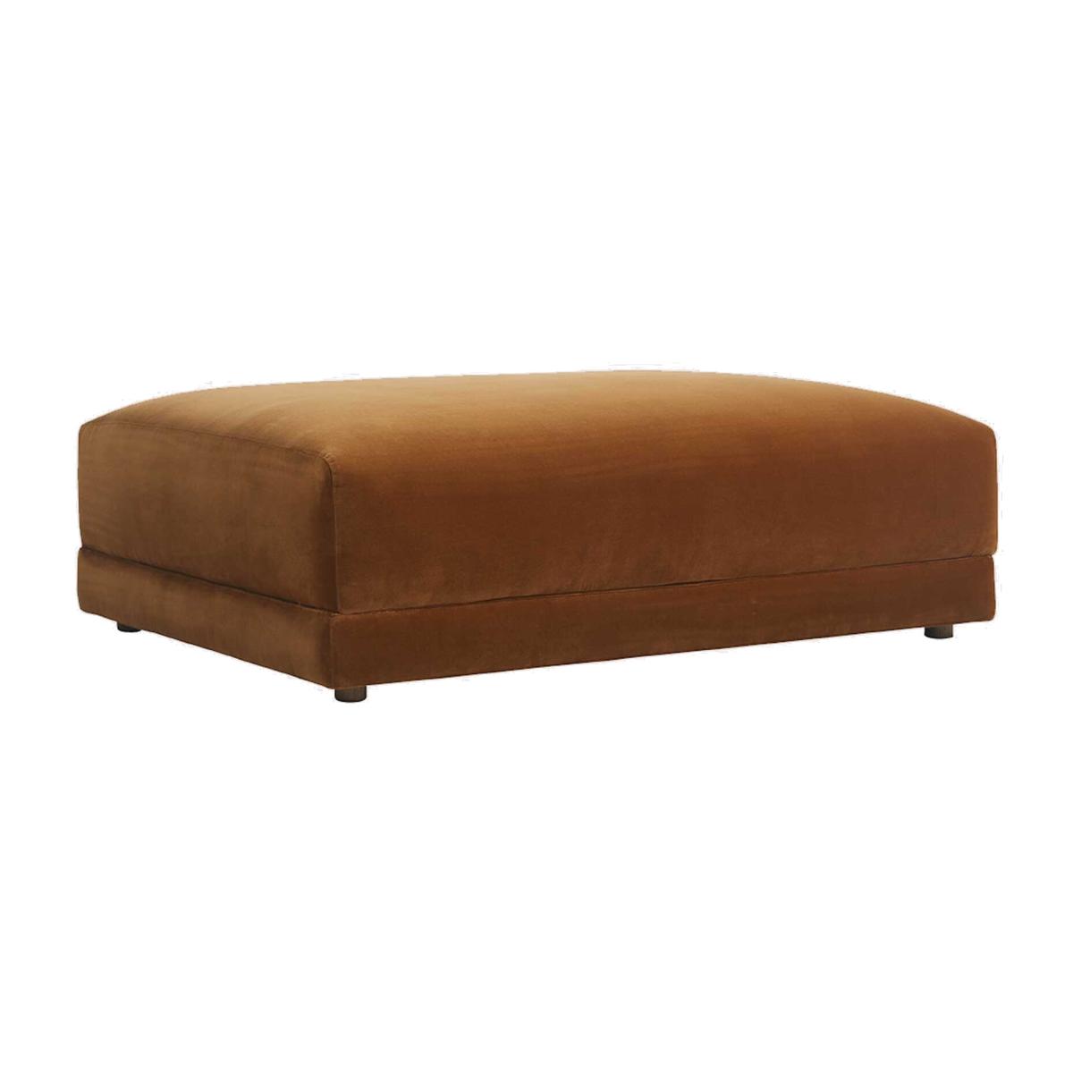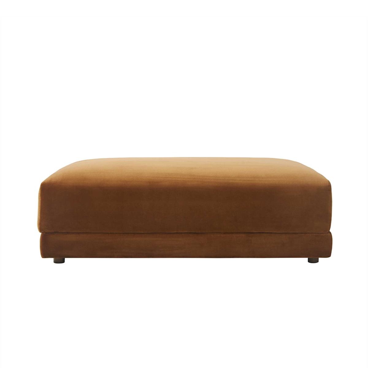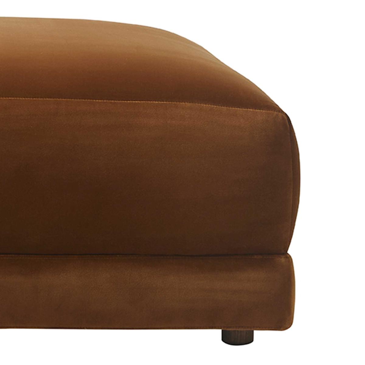 The Velvet Footstool is an elegant addition to any contemporary living space. Enveloped in sumptuous Cotton Velvet Caramel, this modular piece promises both style and comfort. Its robust frame, crafted from birch wood and plywood, embodies durability and natural beauty. Advanced elastic webbing seat suspension, paired with serpentine springs, ensures consistent support. The plush seat cushion, made of high-density foam and feather mix fibre, offers a perfect blend of support and softness. With removable ash wood legs and easy-care guidelines, upkeep is a breeze