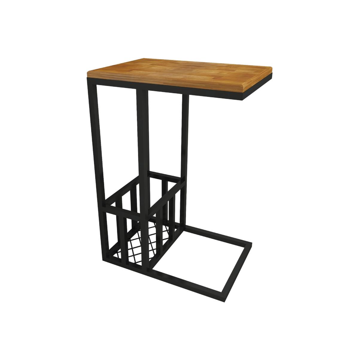 This side table is an elegant and modern addition to any living space. Crafted from solid pine wood and durable iron metal, this end table is durably constructed with water-resistant varnished wood and a powder-coated metal frame and bottom storage basket for convenience. Completely handmade and pre-assembled, this is an ideal piece of furniture for any home.