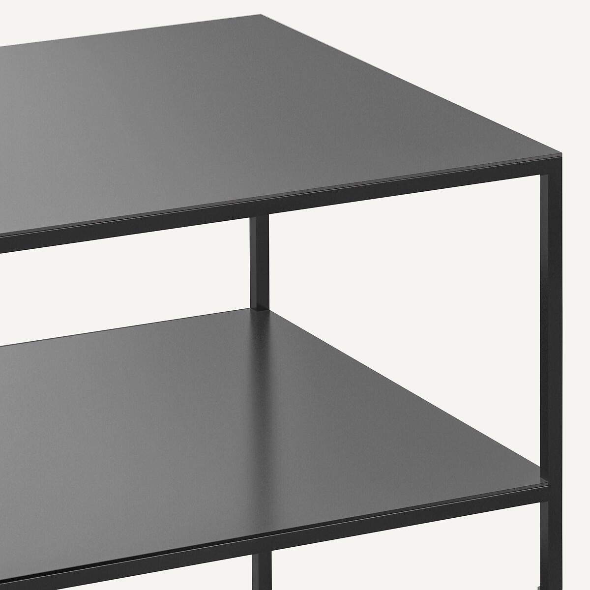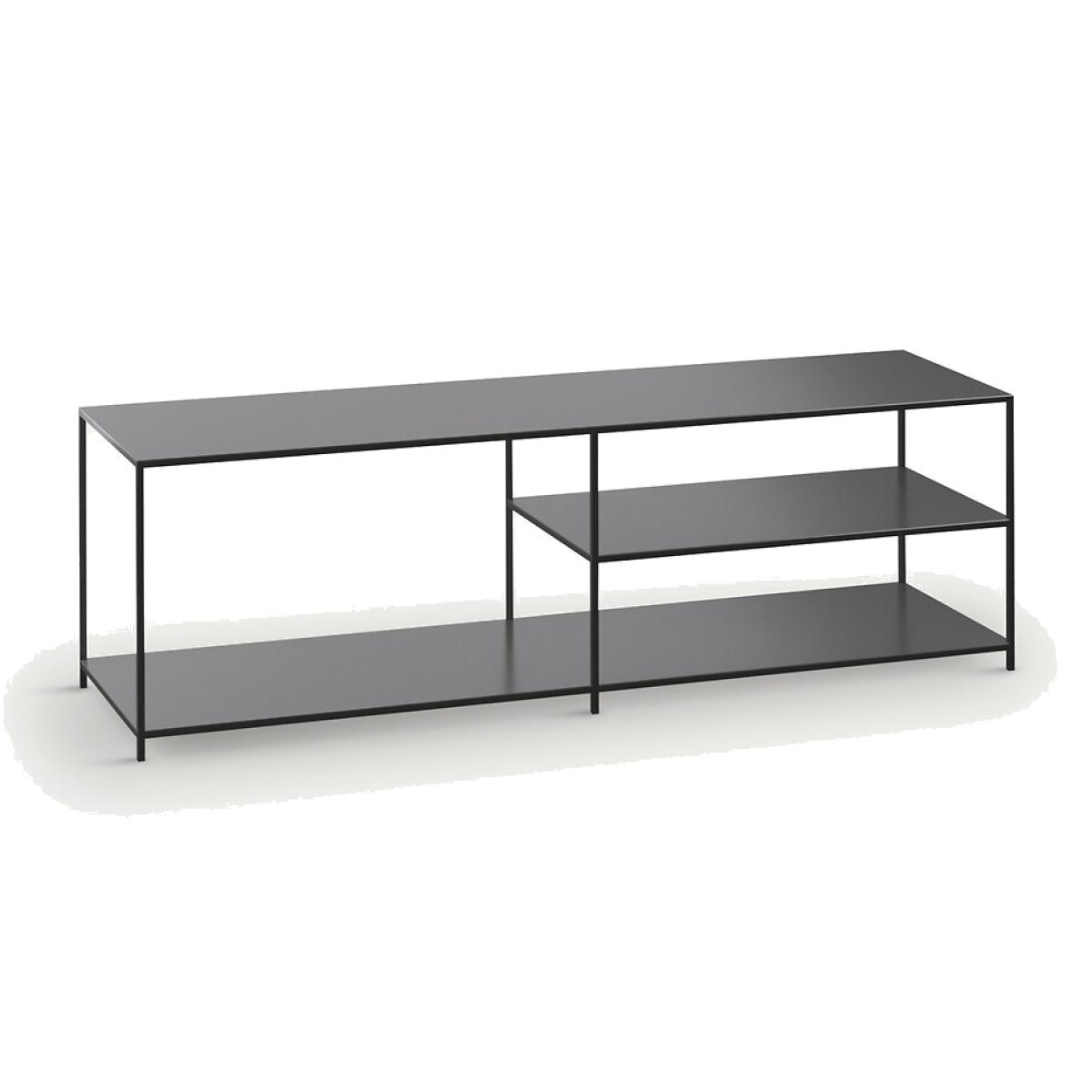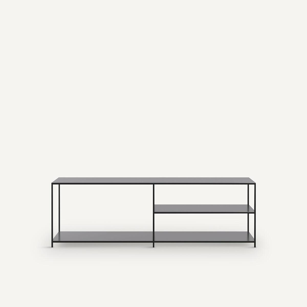 Thanks to its light, graphic look, this TV unit will look good in any home, from classic to contemporary interiors. Its generous dimensions will allow it to accommodate TV, DVD player, game console... Product Details • In black steel with an epoxy lacquered finish • 1 fixed shelf • Maximum supported weight 40 kg. Dimensions • L140 x H45 x D40cm • Height between shelves: 20cm. Home Delivery. Your TV stand will be delivered to your door by appointment!Note! Please check that all access points are large enough to accommodate your delivery (doors, stairs, lifts).Parcel dimensions and weight • L149.5 x H50.5 x D47cm • 27.6kg