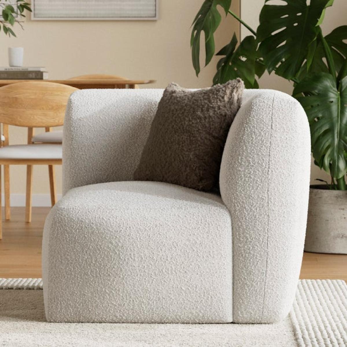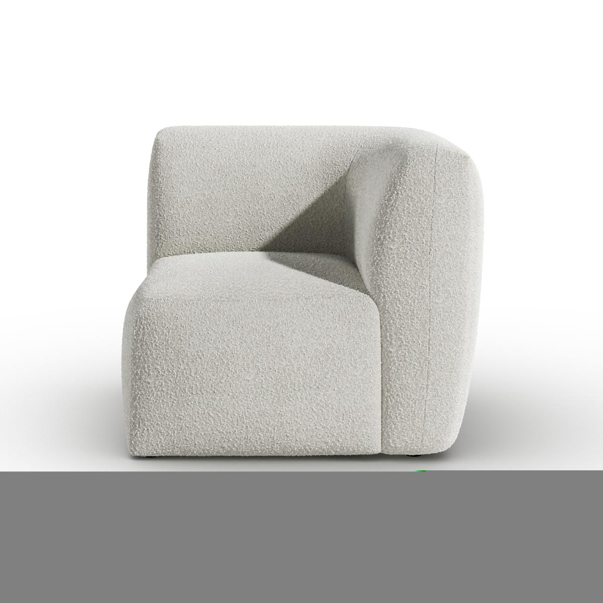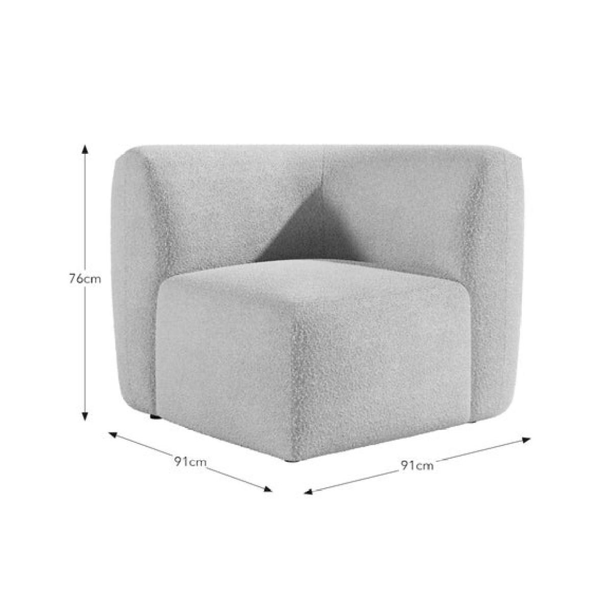 * Modular sofa piece * Fully upholstered * Foam and Fibre filled seat Perfect for anchoring your modular layout, this corner unit brings both form and function to your seating arrangement. Its generous proportions and deep cushioning offer a relaxed, lounge-worthy feel, while the chunky tonal boucle fabric adds a tactile, inviting texture. Designed to work seamlessly with the rest of the Romy range, it allows you to create a bespoke sofa that fits your space perfectly, whether you're building a cosy corner for two or a spacious sectional for entertaining.
