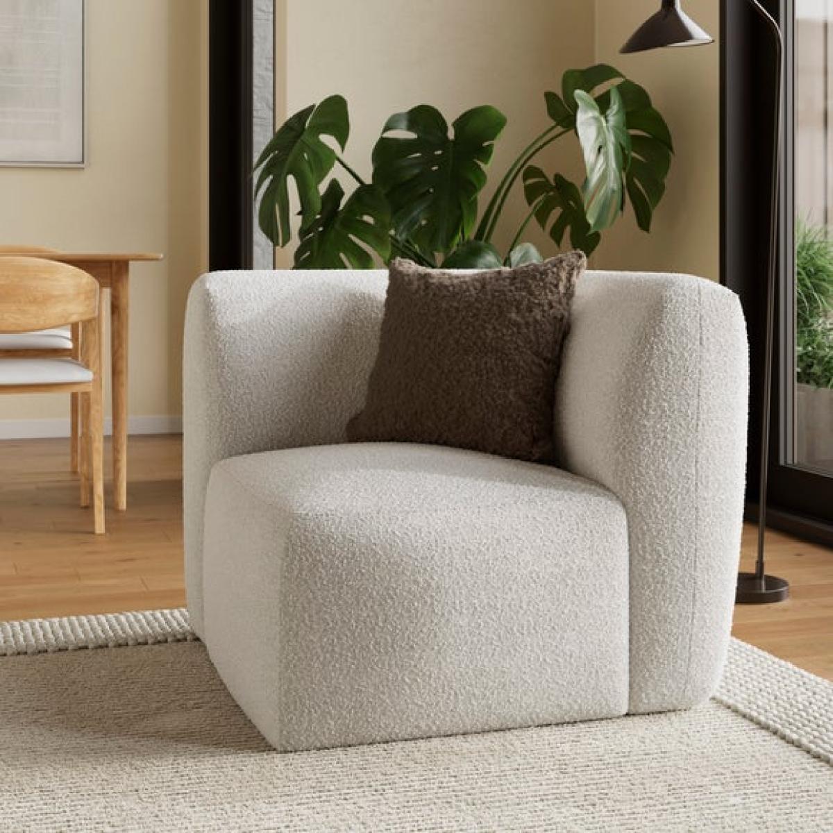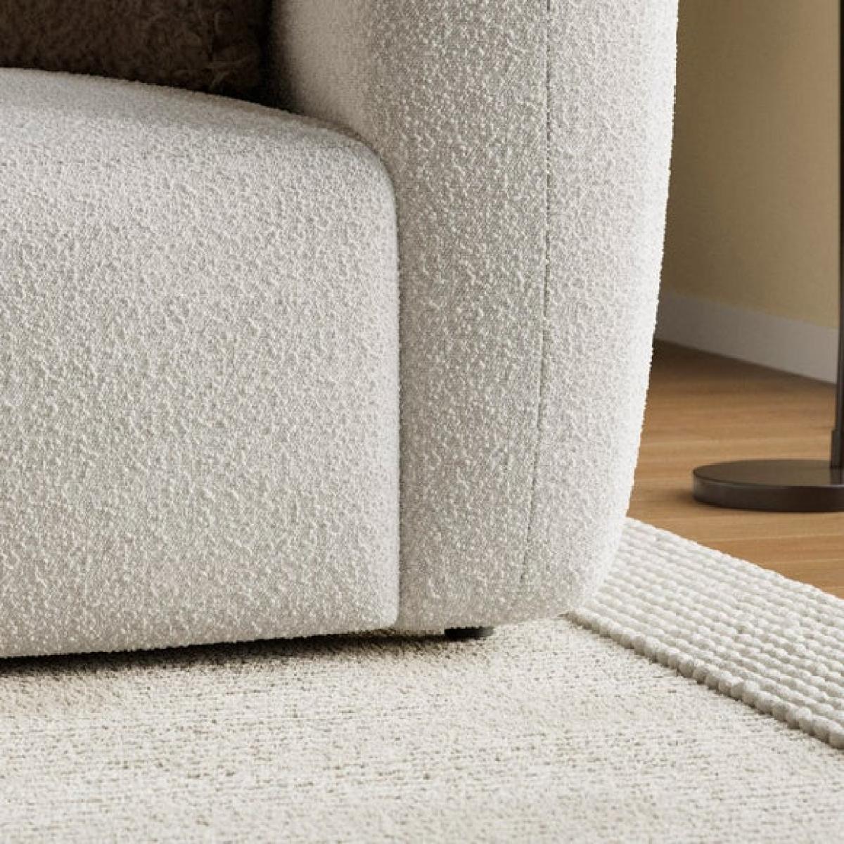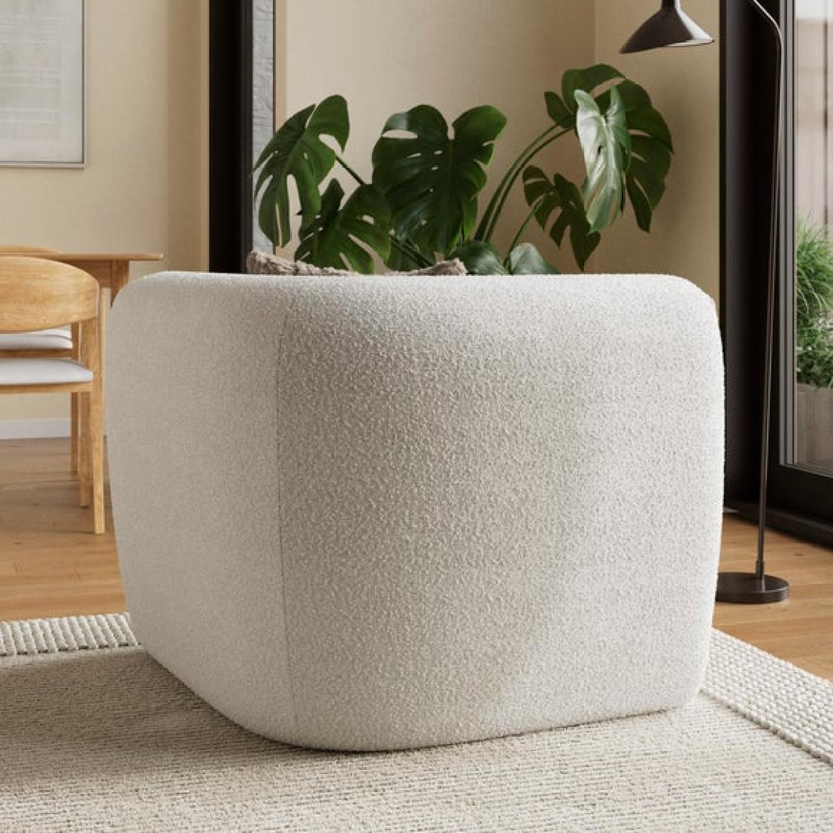 * Modular sofa piece * Fully upholstered * Foam and Fibre filled seat Perfect for anchoring your modular layout, this corner unit brings both form and function to your seating arrangement. Its generous proportions and deep cushioning offer a relaxed, lounge-worthy feel, while the chunky tonal boucle fabric adds a tactile, inviting texture. Designed to work seamlessly with the rest of the Romy range, it allows you to create a bespoke sofa that fits your space perfectly, whether you're building a cosy corner for two or a spacious sectional for entertaining.