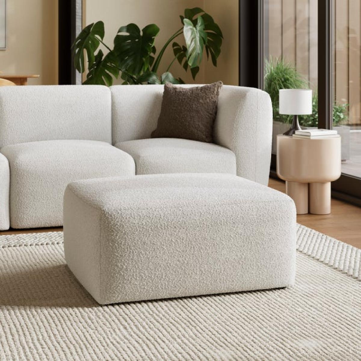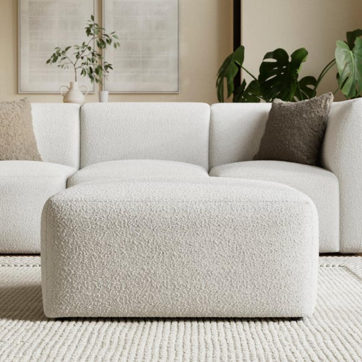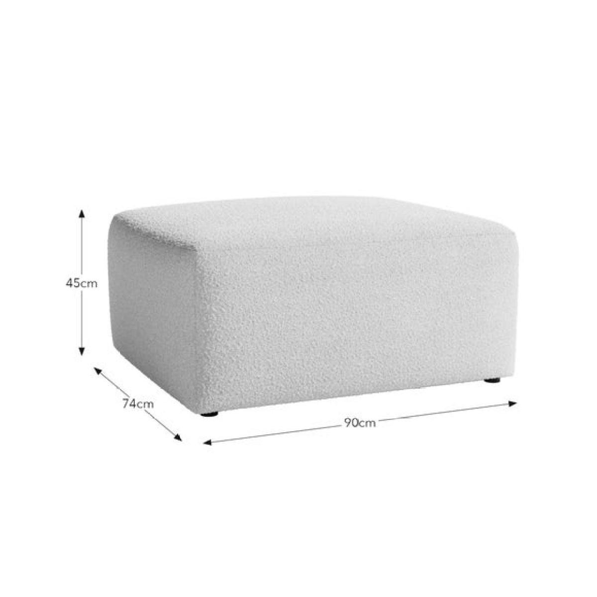 * Modular sofa piece * Fully upholstered * Foam and Fibre filled seat This footstool is the perfect finishing touch to your Romy modular setup, offering a flexible piece that can be used as a footrest, extra seat, or even a casual coffee table. Upholstered in the same chunky tonal boucle as the rest of the range, it brings a cohesive, textural element to your space.