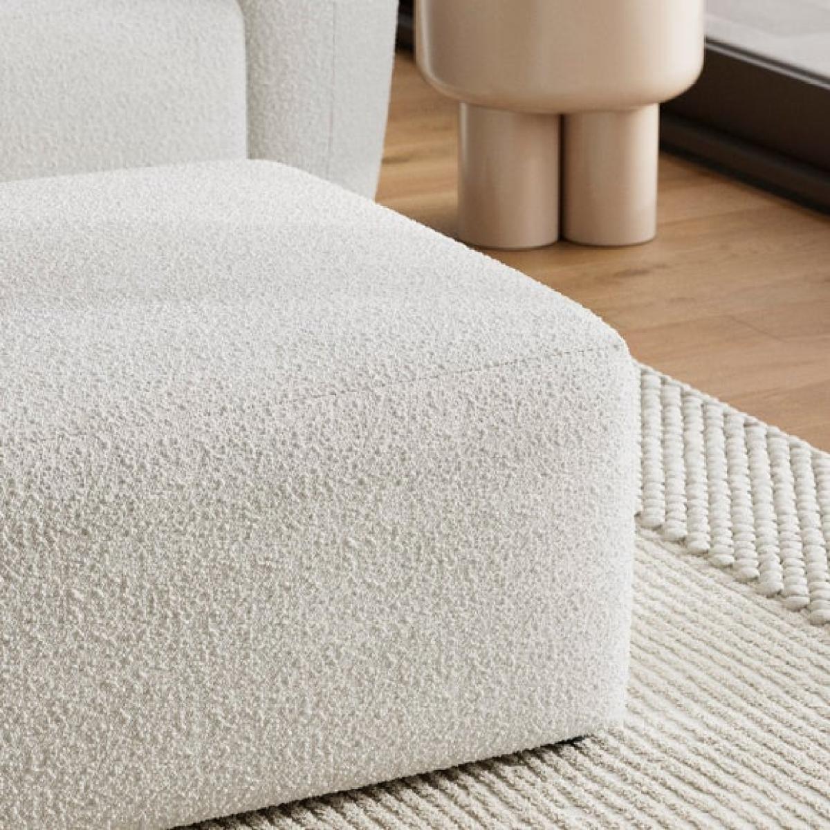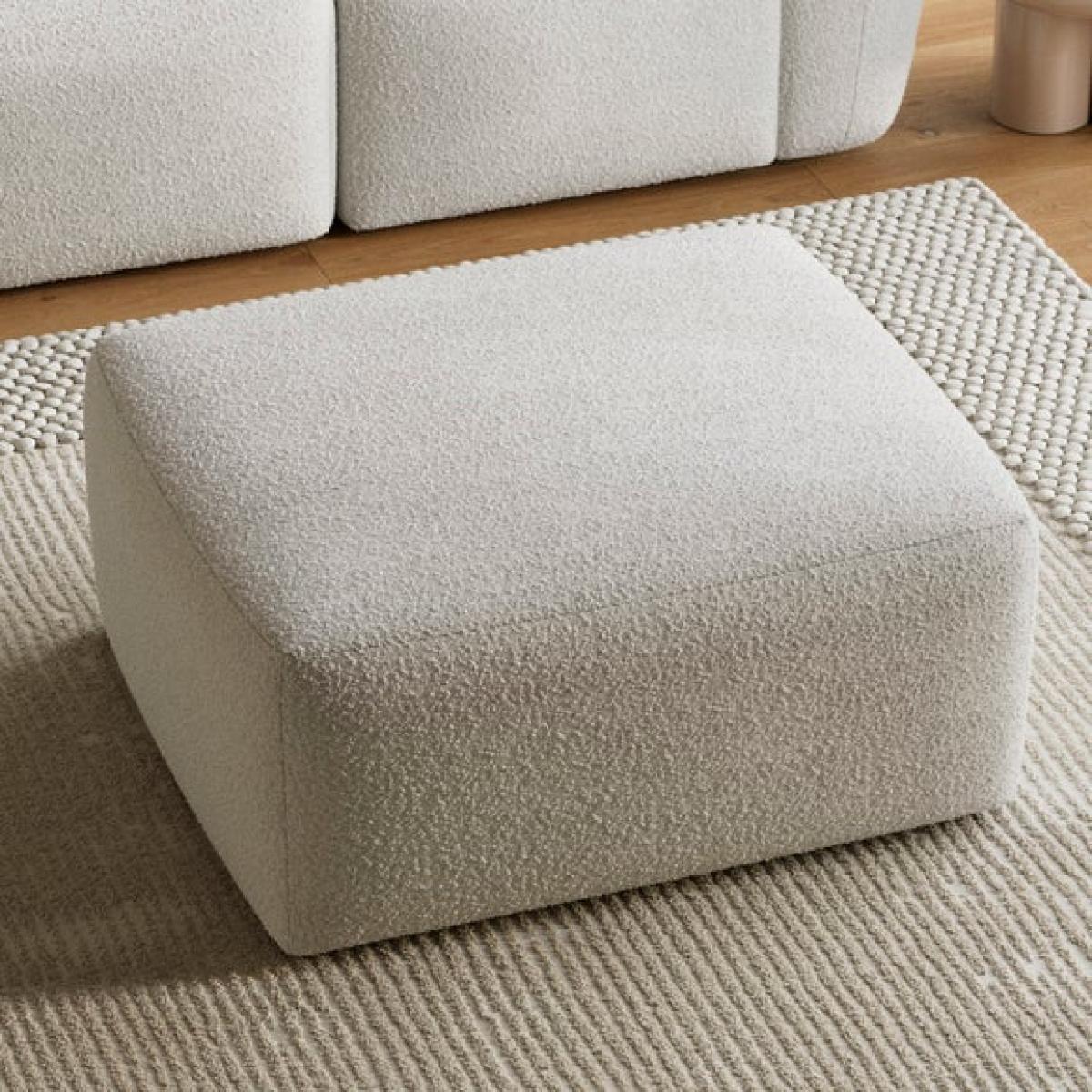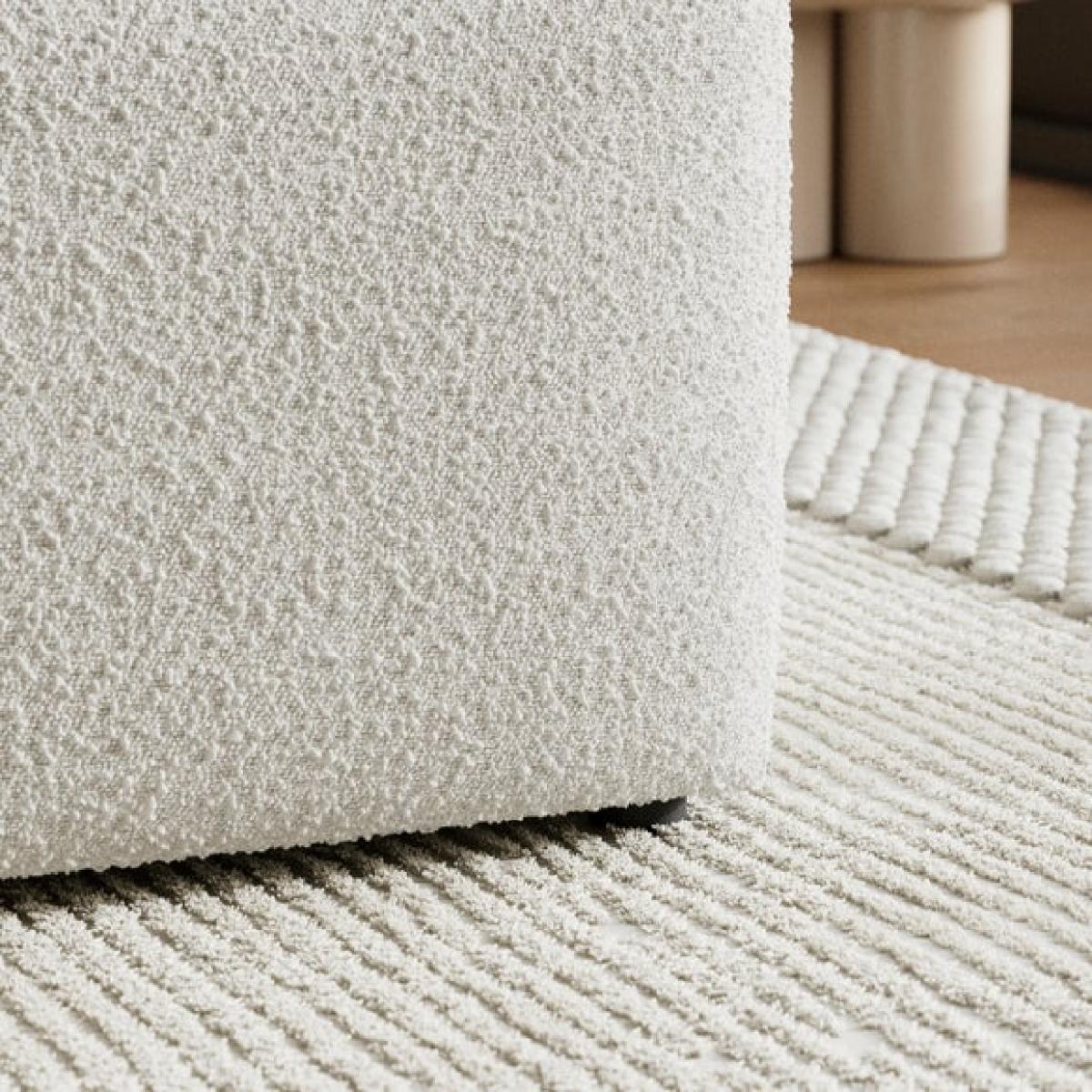 * Modular sofa piece * Fully upholstered * Foam and Fibre filled seat This footstool is the perfect finishing touch to your Romy modular setup, offering a flexible piece that can be used as a footrest, extra seat, or even a casual coffee table. Upholstered in the same chunky tonal boucle as the rest of the range, it brings a cohesive, textural element to your space.