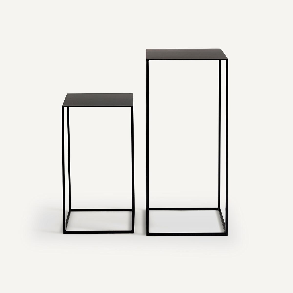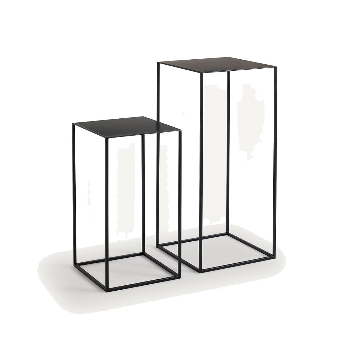 Lacquered metal nesting side tables, sold in sets of 2: With clean, contemporary lines these will be at home in any room. Product Details • With a Matt Epoxy finish. Dimensions • Small: L.30 x Height.54 x Depth.30cm • Large: L.34 x Height.74 x Depth.34cm Parcel dimensions and weight • L.84.5 x Height.36 x Depth.38cm • 16.13kg