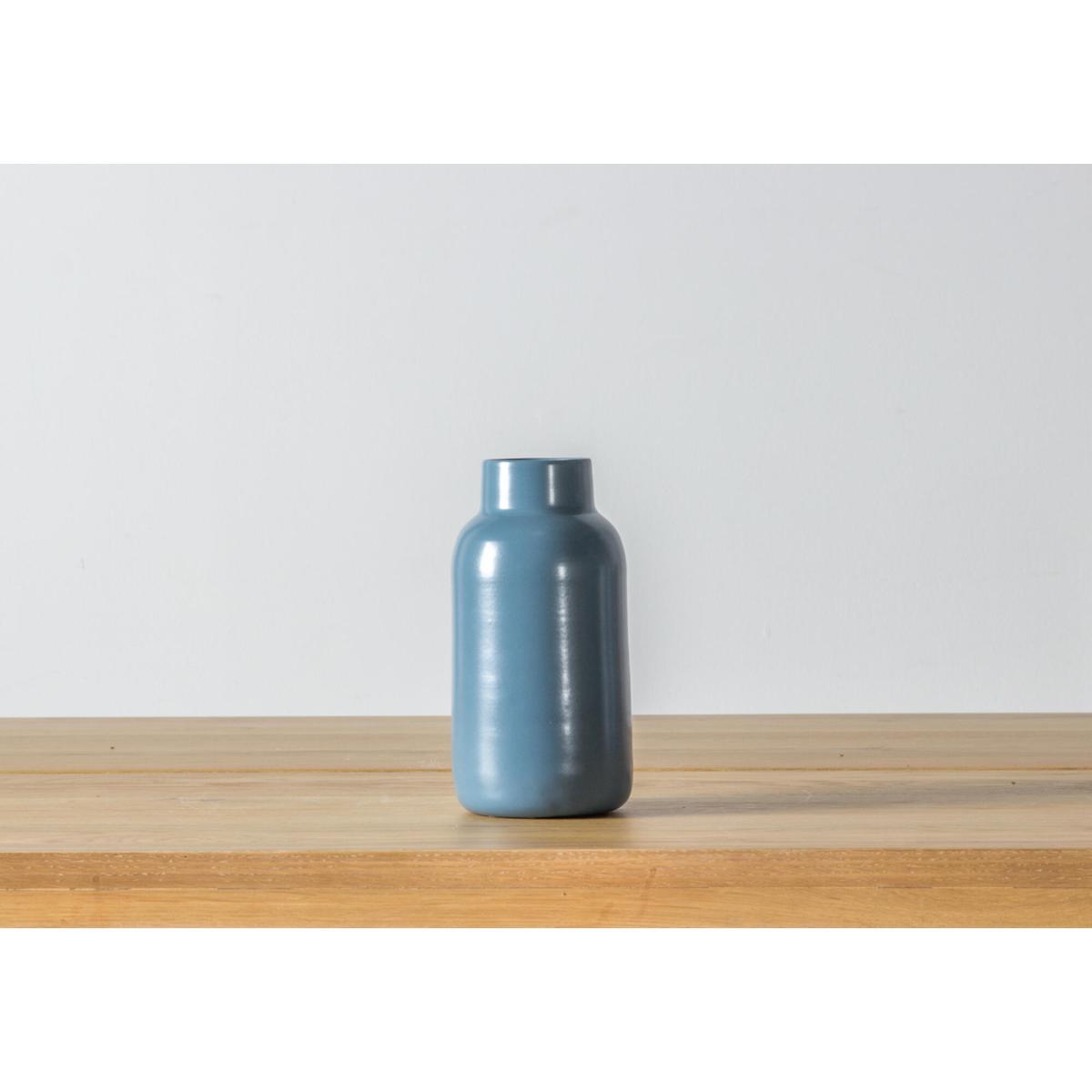 Rustic charm evocative of a bygone era, the Ronald range of Vases utilise apothecary style in their traditional bulbous and conical shape, and are made of solid Iron. With a smooth satin coloured finish in a classic Blue tone, this vase will blend in with any decorative scheme.