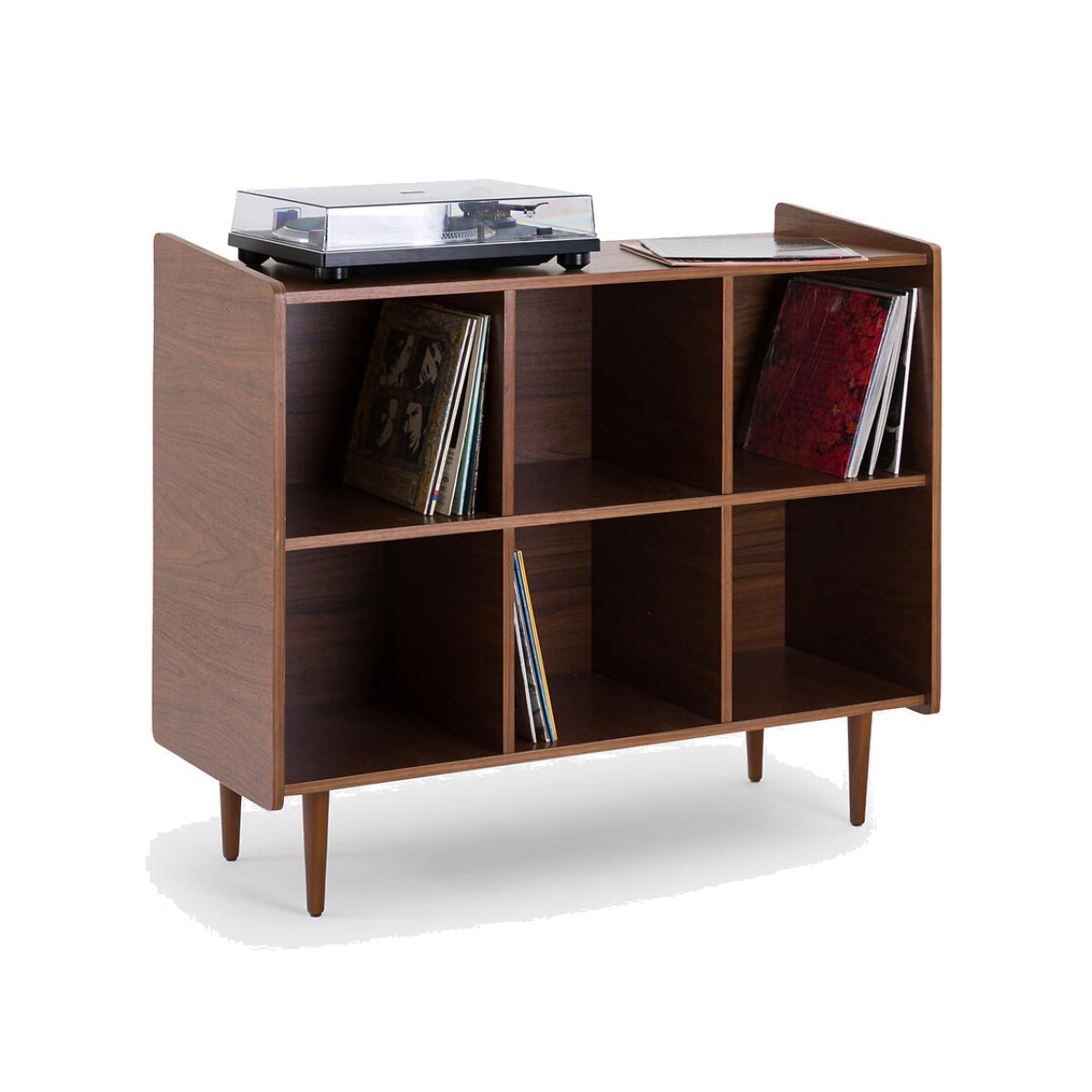 Walnut veneer, lines inspired by 60s furniture... The Ronda vinyl cabinet immediately creates a vintage atmosphere in a living room. Functional, its compartments offer storage space for your vinyls and your turntable. Designed by La Redoute Intérieurs. Product Details • 6 compartments • Cabinet in walnut veneered MDF with a nitrocellulose varnish finish • Walnut-stained solid pine legs, nitrocellulose varnish • Polypropylene glidesDimensions. Overall • Width: 113cm • Height: 102cm • Depth: 48cm. Usable space • Compartments : L35.5 x H35.5 x D41.8cm • Depth of upper top: 44cm • Height of legs: 21cmDelivery:. This product requires assembly. Available for home delivery. Note! Please check that the openings (doors, stairs, elevators) will allow packages to pass through. • WOOD FROM MORE SUSTAINABLY MANAGED FORESTS AND CONTROLLED SOURCES. FSC® Mix wood contains at least 70% FSC® certified and/or recycled wood, the remainder being FSC® controlled wood. Dimensions and weight of parcel2 parcels • L98.2 x H16.5 x D56cm. 21.8kg • L115.5 x H12.5 x D52cm. 26kg