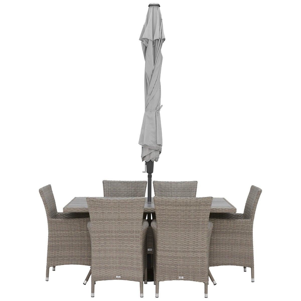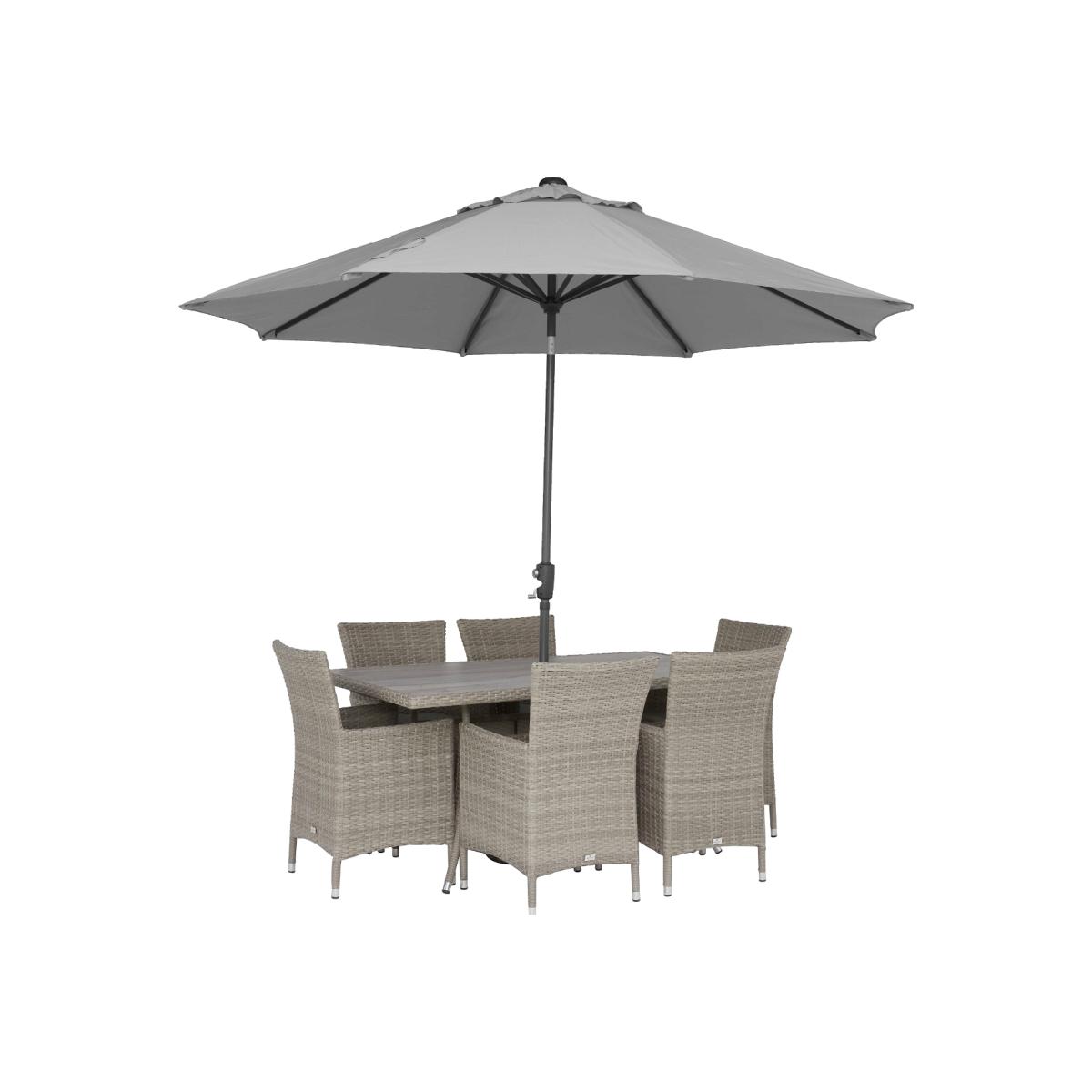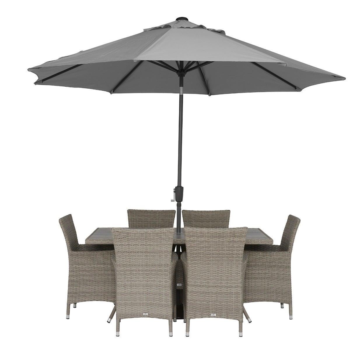 Ronda 6 Seat Rectangular Garden Dining Set with Parasol, Grey | Barker & Stonehouse