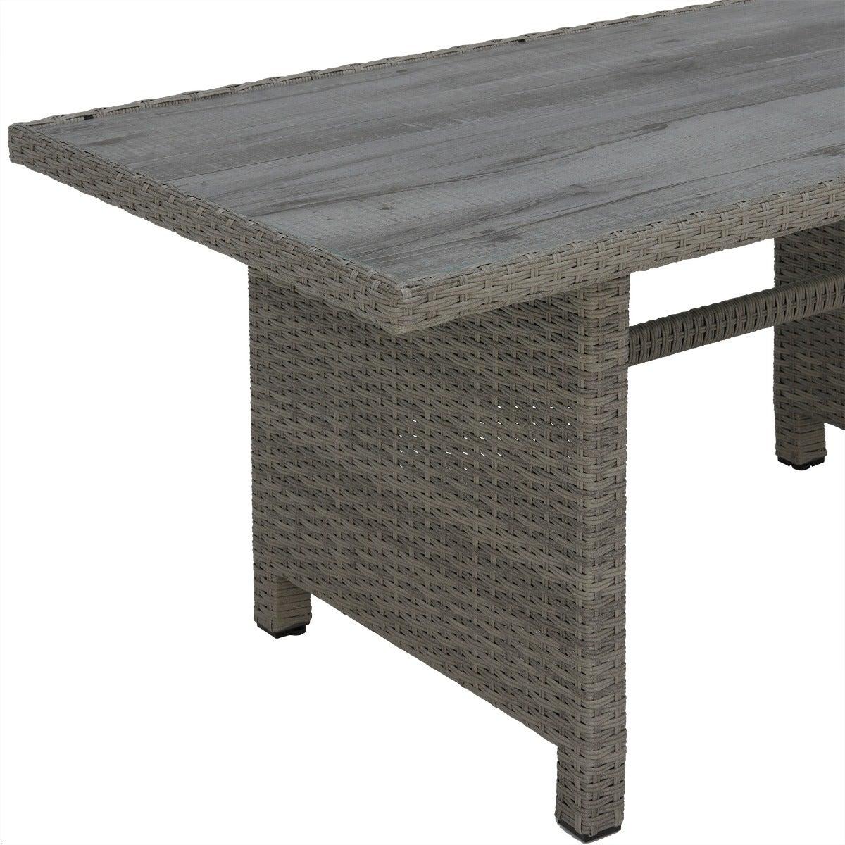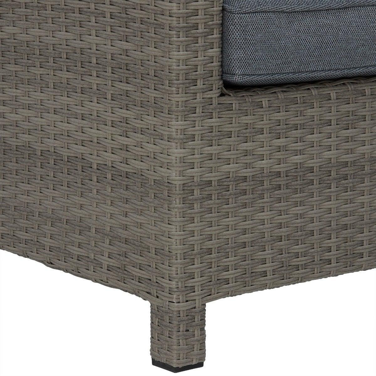 Design. Providing plenty of seating for the whole family, the Ronda Garden Corner Dining Set has a stunning two tone look that combines a robust aluminium frame finished in slate grey weave, with plump lava grey seat cushions to provide the optimum balance between comfort and support. Seating up to 8, whether it be for a boujee breakfast or a lovely evening meal, the Ronda Garden Corner Dining Set delivers the perfect place to make memories.