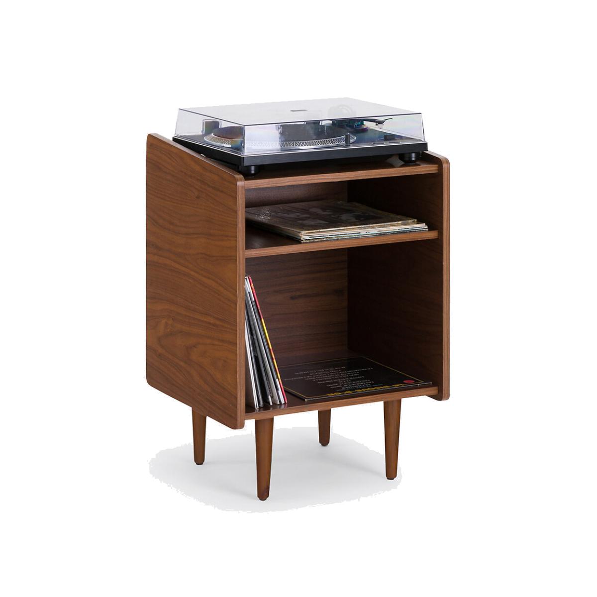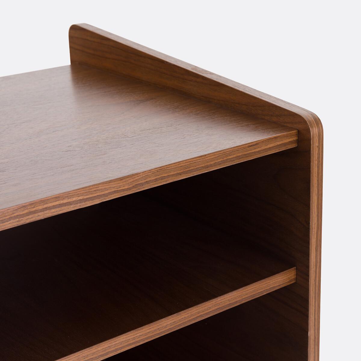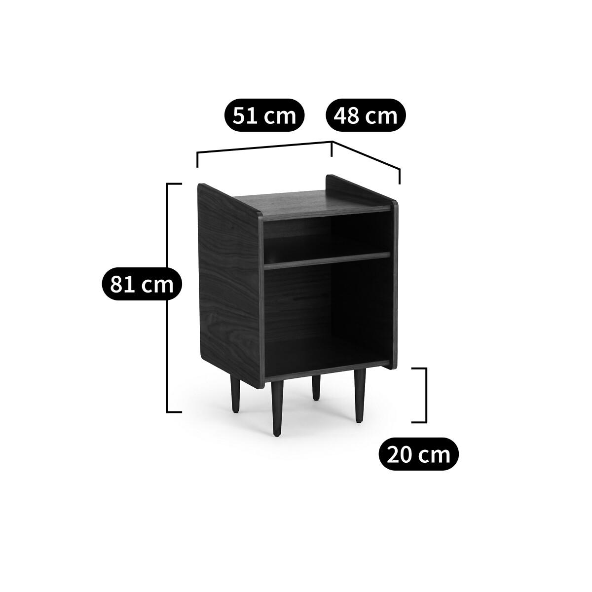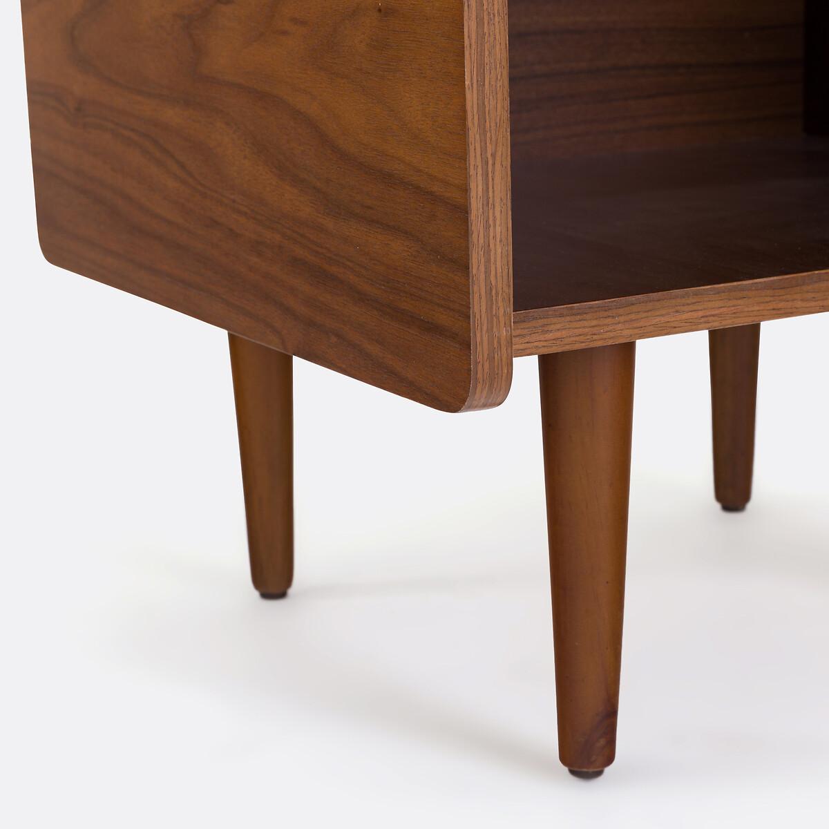 Walnut veneer, lines inspired by 60s furniture... The Ronda vinyl cabinet immediately creates a vintage atmosphere in a living room. Its compact format is ideal for smaller spaces. Designed by La Redoute Interiors. Product Details • 2 compartments • Cabinet in walnut veneered MDF with a nitrocellulose varnish finish • Walnut-stained solid pine legs, nitrocellulose varnish • Polypropylene glidesDimensions. Overall • Width: 51cm • Height: 81cm • Depth: 48cm. Usable space • Small compartment: L48 x H13.7 x D41.8cm • Large compartment : L48 x H35.5 x D41.8cm • Depth of upper top: 44cm • Height of legs: 20cmDelivery:. This product is sold for self-assembly. Available for home delivery. Dimensions and weight of parcel1 parcel • L76.5 x H16.5 x D56cm. 20.3kg