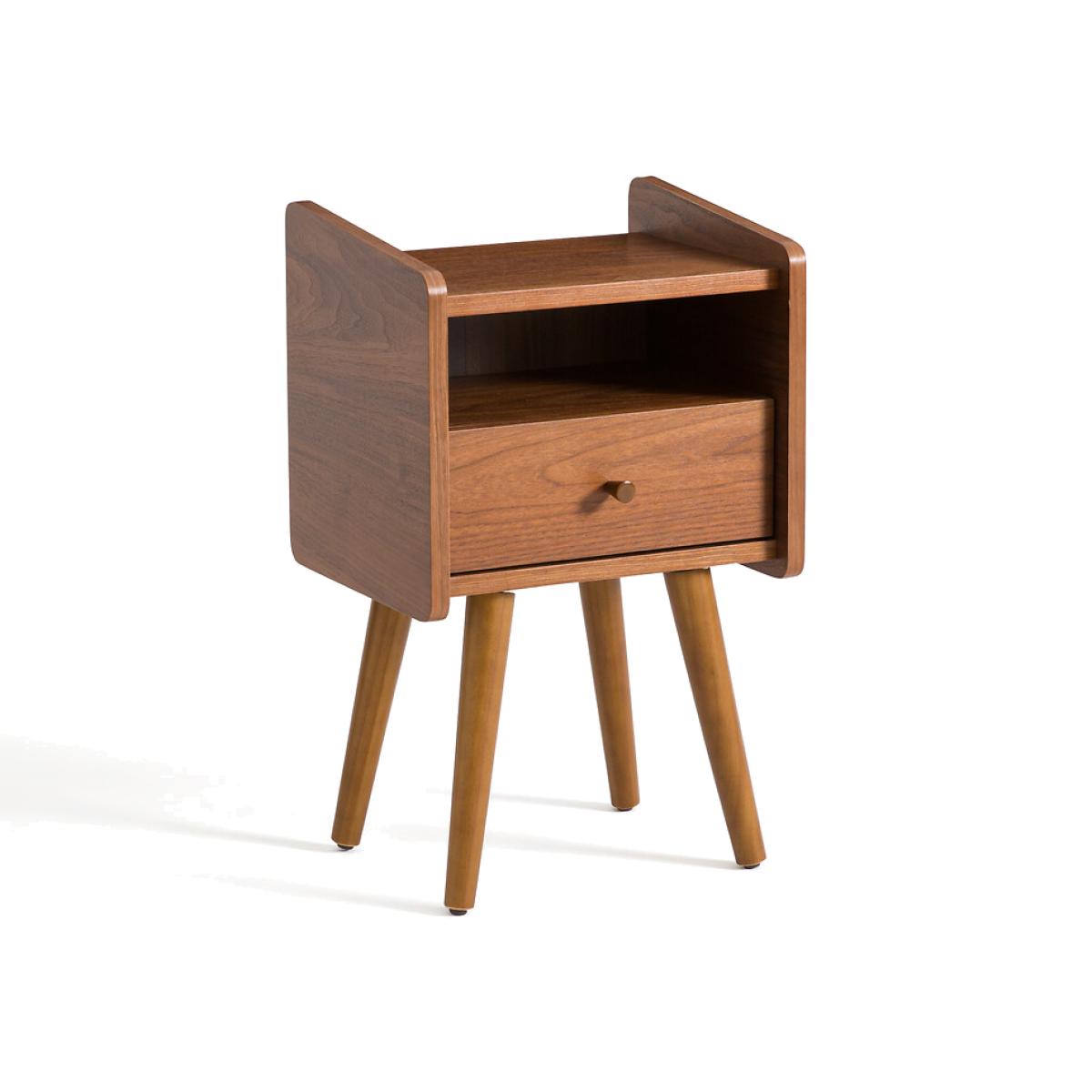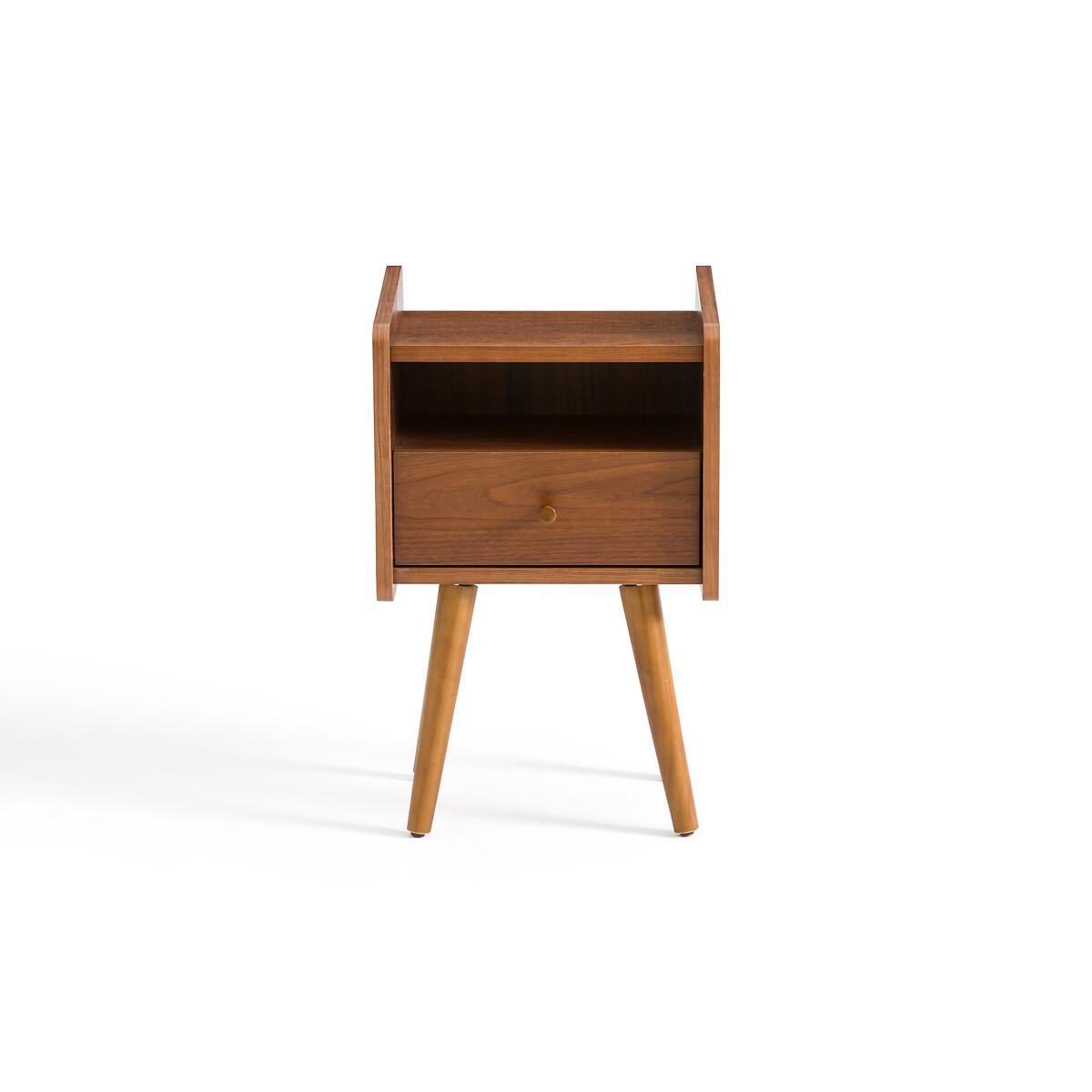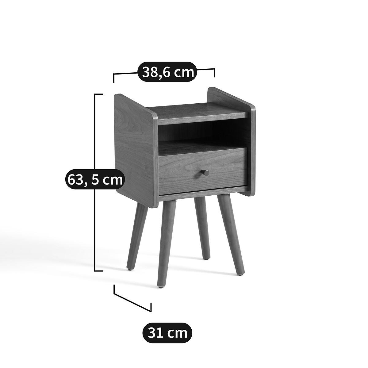 I love this vintage-style bedside table for its compact yet characterful design, which works particularly well in both retro-inspired and eclectic interiors. Its warm wood tones and simple lines make it versatile enough to sit alongside beds in cosy cottages or modern bedrooms with a nod to the past. When styling, consider adding a vintage lamp, a small tray for essentials, or a favourite book on top to enhance its charm. The drawer is practical for stashing bedtime essentials, while the open shelf offers space for decorative accents or everyday items. Overall, a great statement piece that combines functionality with nostalgic appeal.