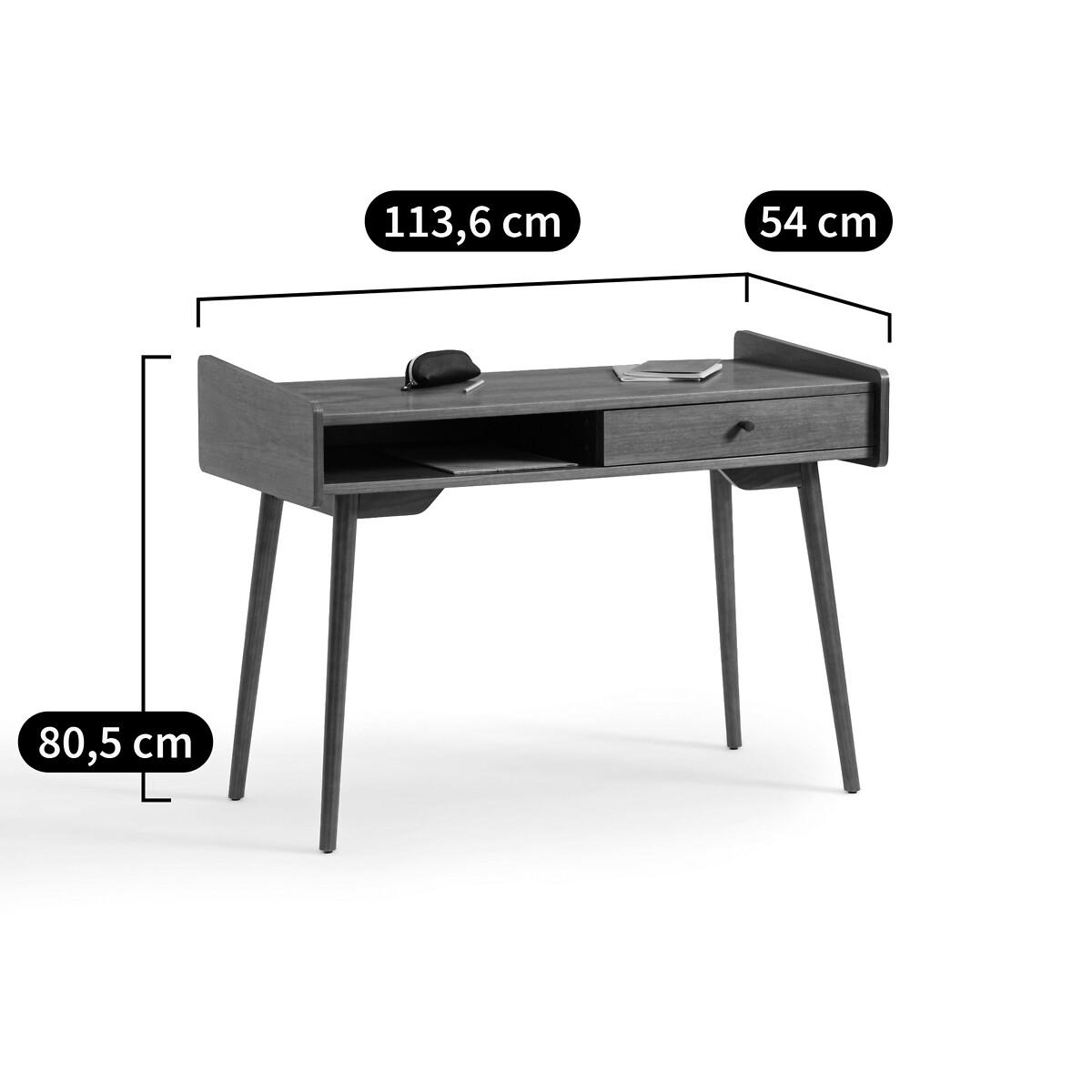 I love this vintage-style desk for its clean lines and nostalgic appeal, making it a versatile addition to both traditional and contemporary interiors. It works particularly well in mid-century modern, Scandinavian, or eclectic spaces where its warm wood tones can add a touch of character. Practical styling tips include pairing it with a sleek task lamp and minimal accessories to keep the look uncluttered, or layering with vintage storage boxes and textured textiles for a cosy, lived-in vibe. Its compact size also makes it ideal for home offices or study nooks, providing a stylish yet functional workspace without overwhelming the room.