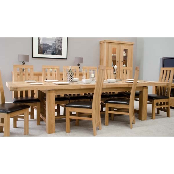 The Rondeau range is an exquisite collection of dining furniture. The bold and chunky styling and light finish make it a perfect choice for modern dining rooms. The Grand is the largest table in the range and comfortably seats up-to 14 people when fully extended. The table features an extra thick, solid oak top which sits on square profile legs. The Rondeau Grand dining table is made from the finest European solid oak. Oak timbers are renowned for their density and beautifully intricate grain patterns. To highlight the timber’s natural characteristics a clear lacquered finish is applied. The table features a twin-leaf extension system, giving you maximum flexibility. Each leaf extends the length of the table by 50cm, allowing an additional two people to be seated. When not required the extension leaves are stored inside the table. Please Note: Chairs not included.