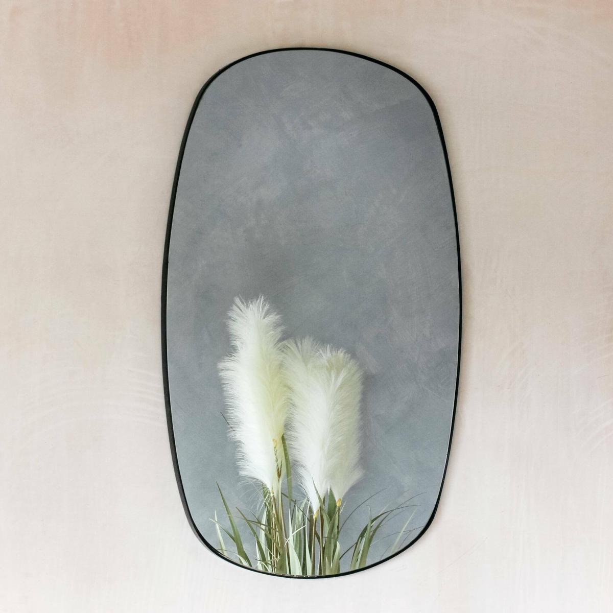 With an unusual silhouette, curved edges and a narrow black rim, the Ronnie mirror adds a surrealist touch to your interior.