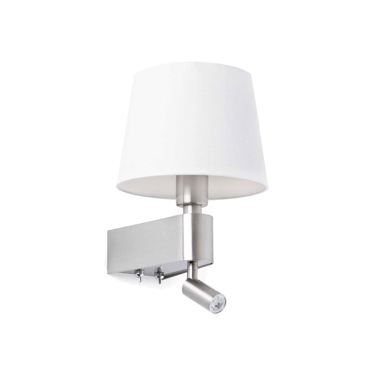 The wall light has a bold look which will influence its surroundings in a positive way. The fitting is available with a black or white shade, allowing the fitting to match all colour schemes. The fitting is ideal for mounting as a bedside light. is also available with an adjustable LED reading lamp. The fitting has a standard feel, making a pleasant addition to any room. Class one. Includes a double switch.