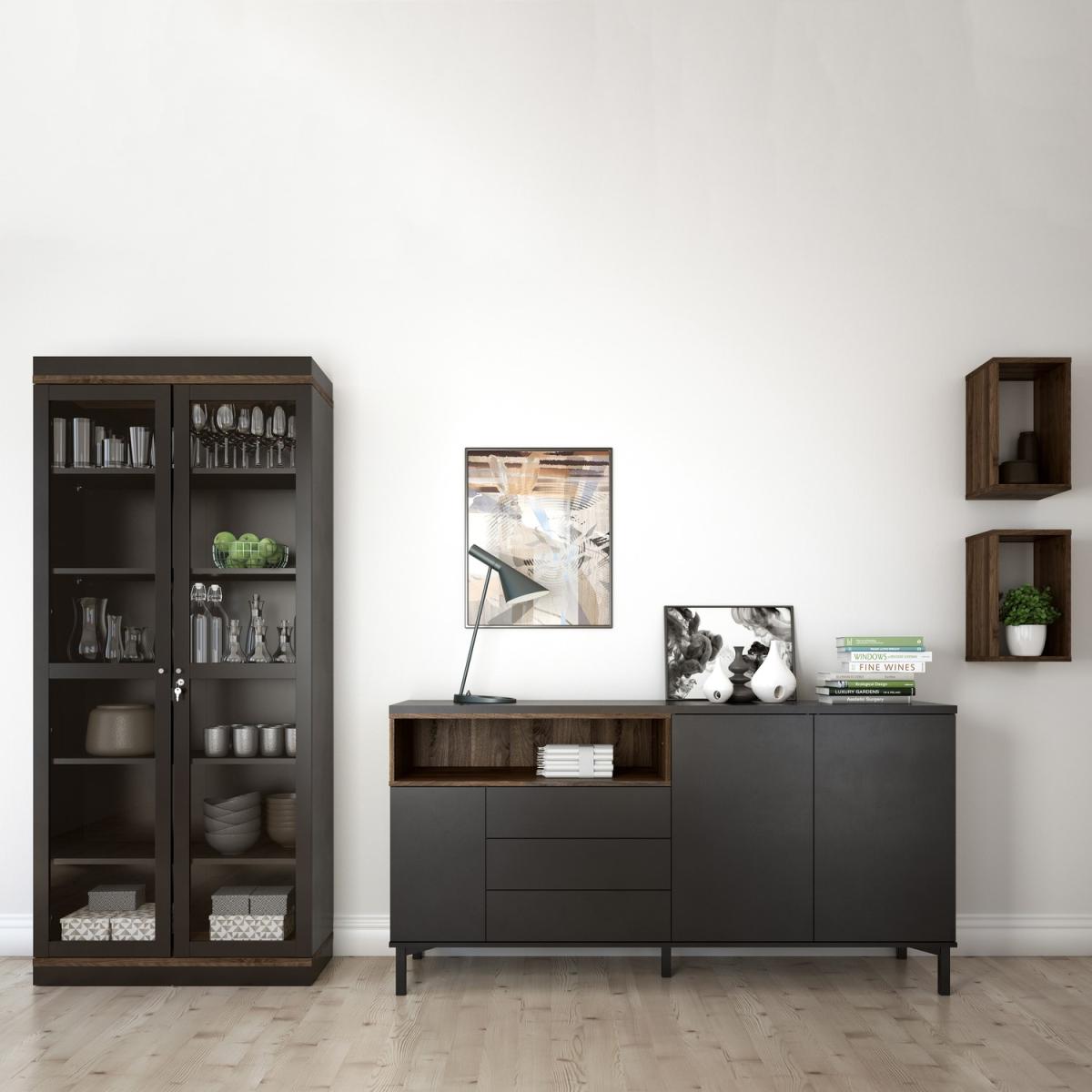 Roomers Sideboard 3 Drawers 3 Doors in Black and Walnut