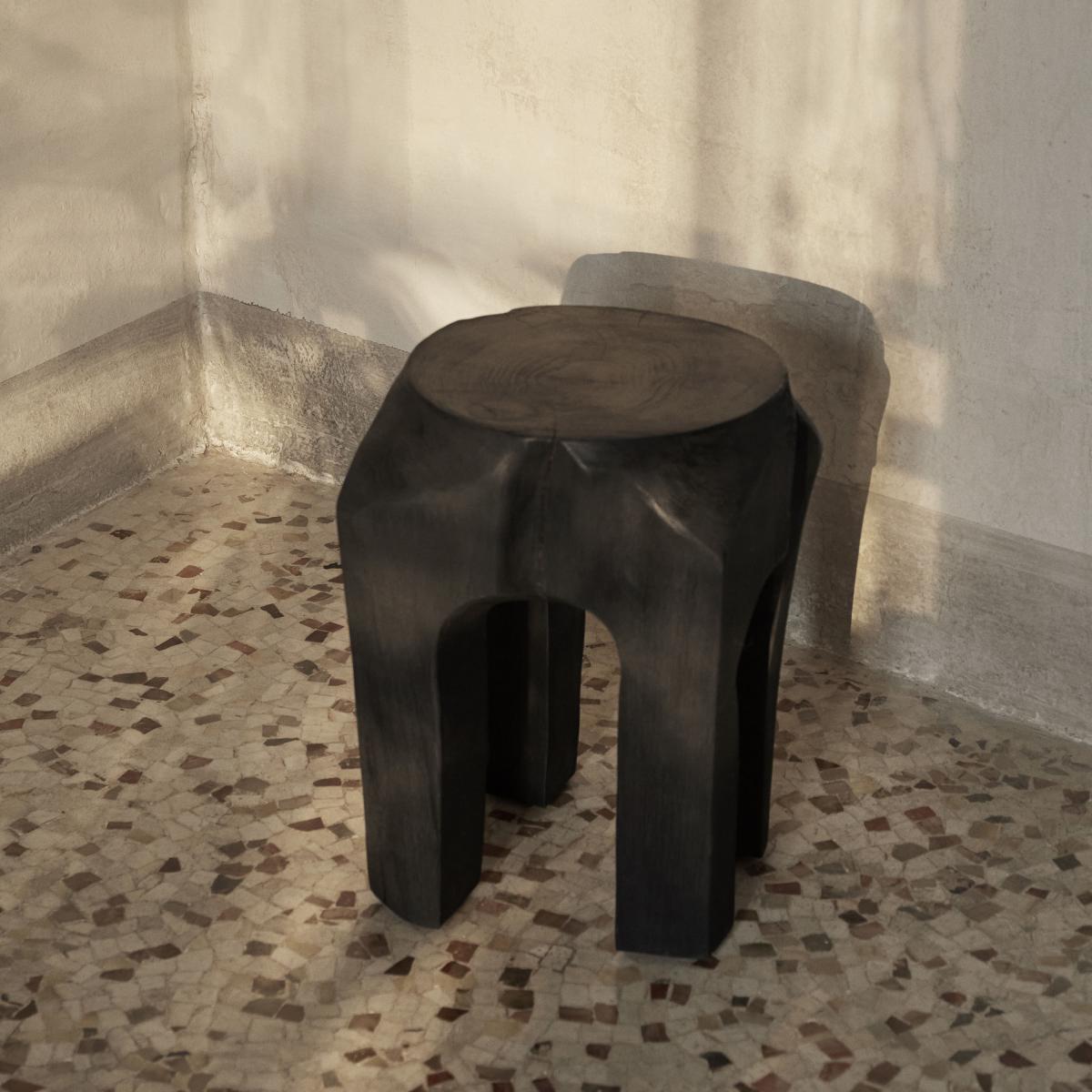 Work the tribal trend in your home with this carved, primitive-shaped wooden stool. With its traditional, ethnic style, Root encourages you to reconnect with nature. It adds a unique touch of warmth to your home. Each stool is made from a single teak tree root retrieved from a sawmill. This part of the tree is often regarded as waste material and discarded during mass production. After extracting the root, it is hand-carved and then stained, creating an entirely unique, one-of-a-kind piece. Each piece may vary slightly in size and colour. The Root stool can also be used as a small side table or bedside table. Do not place liquids or damp objects directly onto the surface.