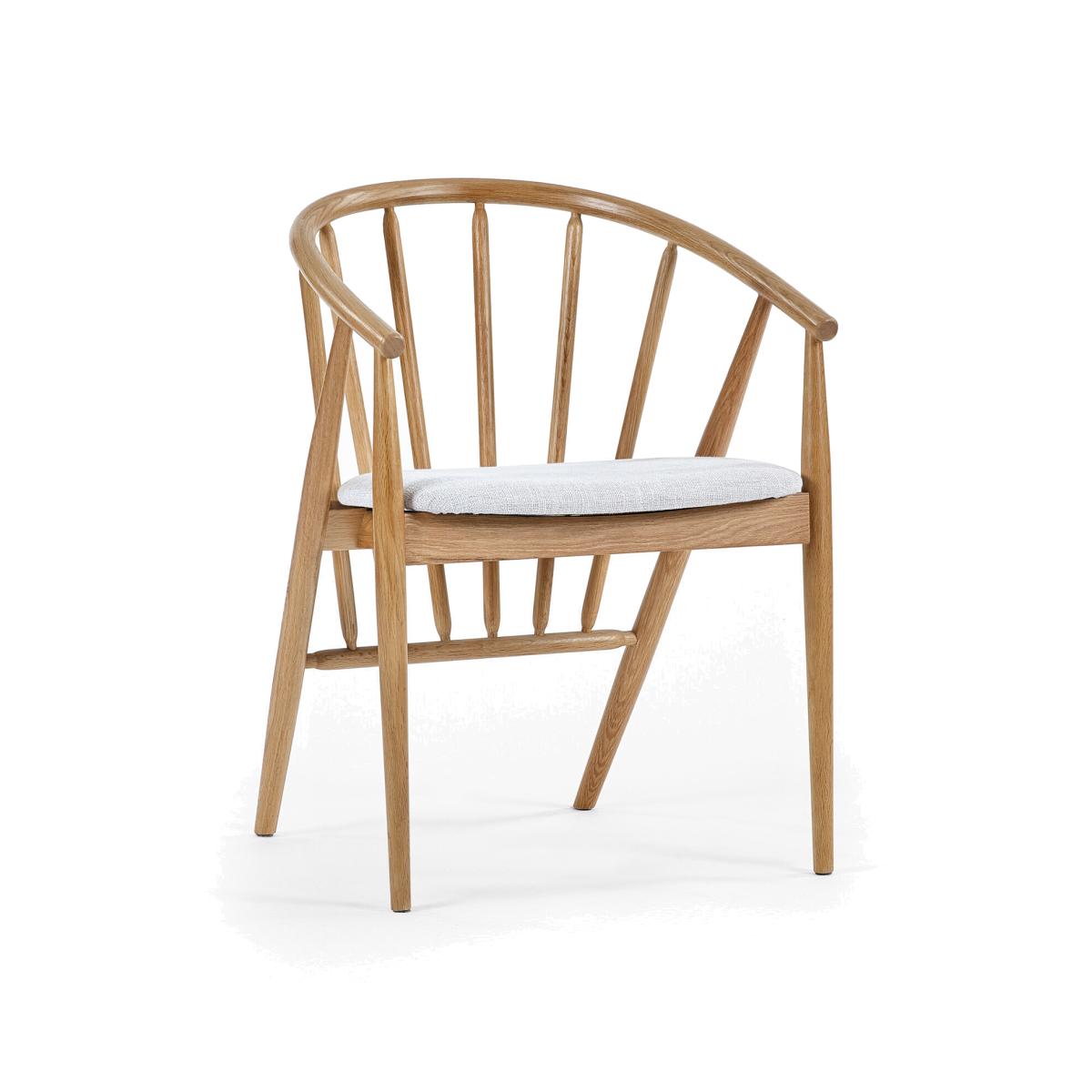 I really like this curved back dining chair for its simple yet elegant design. Its natural finish makes it versatile, working well in both contemporary and Scandinavian-inspired interiors, as well as rustic or coastal schemes. The curved back adds comfort and a touch of style, making it ideal for more relaxed dining spaces or as occasional seating. When styling, consider pairing it with a minimalistic or textured table to highlight its natural wood tone. Adding cushions in neutral or muted tones can also enhance comfort and visual interest without overpowering its clean lines. This chair is a practical choice that can adapt to various interior themes, making it a smart addition to any dining room.