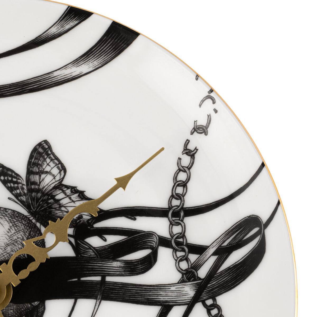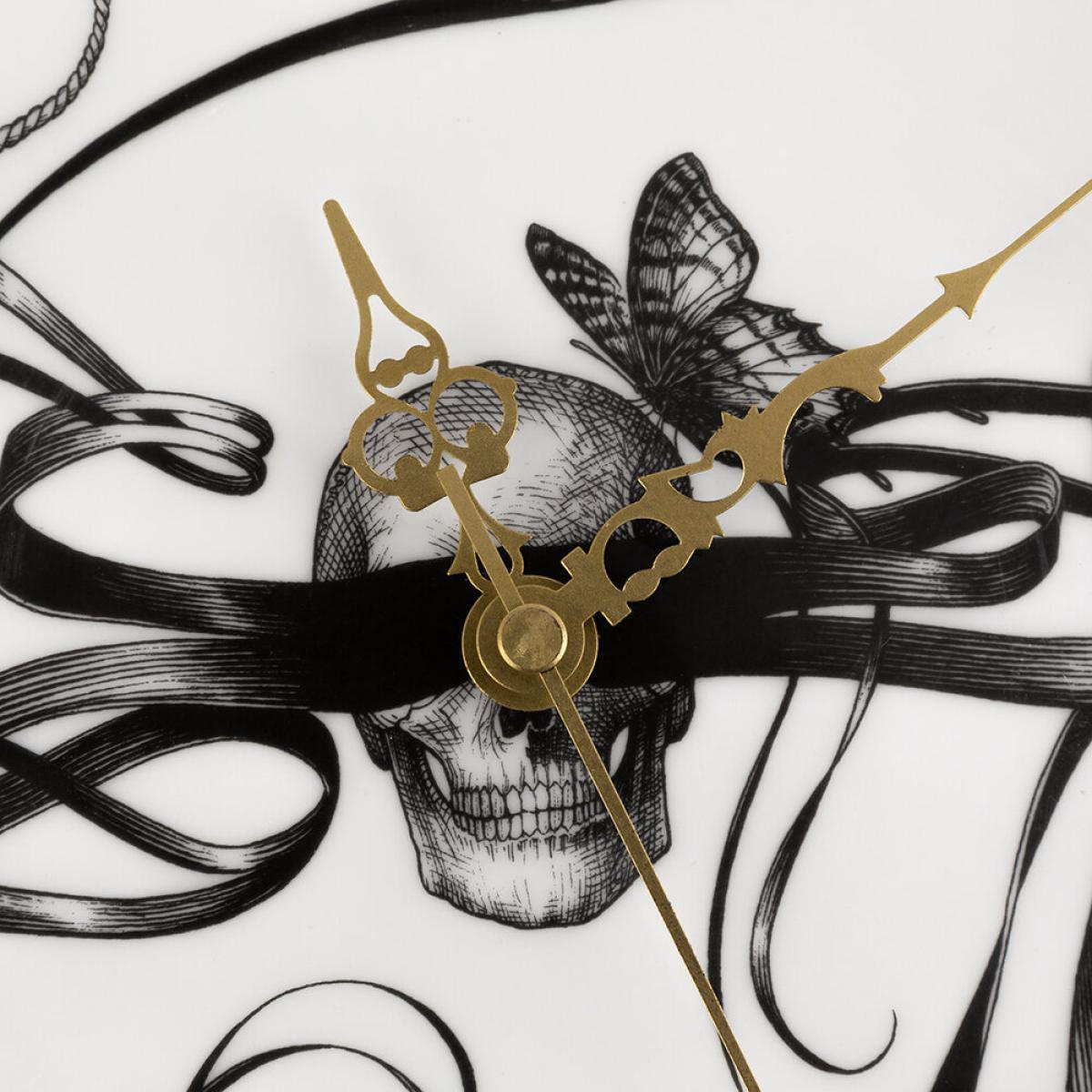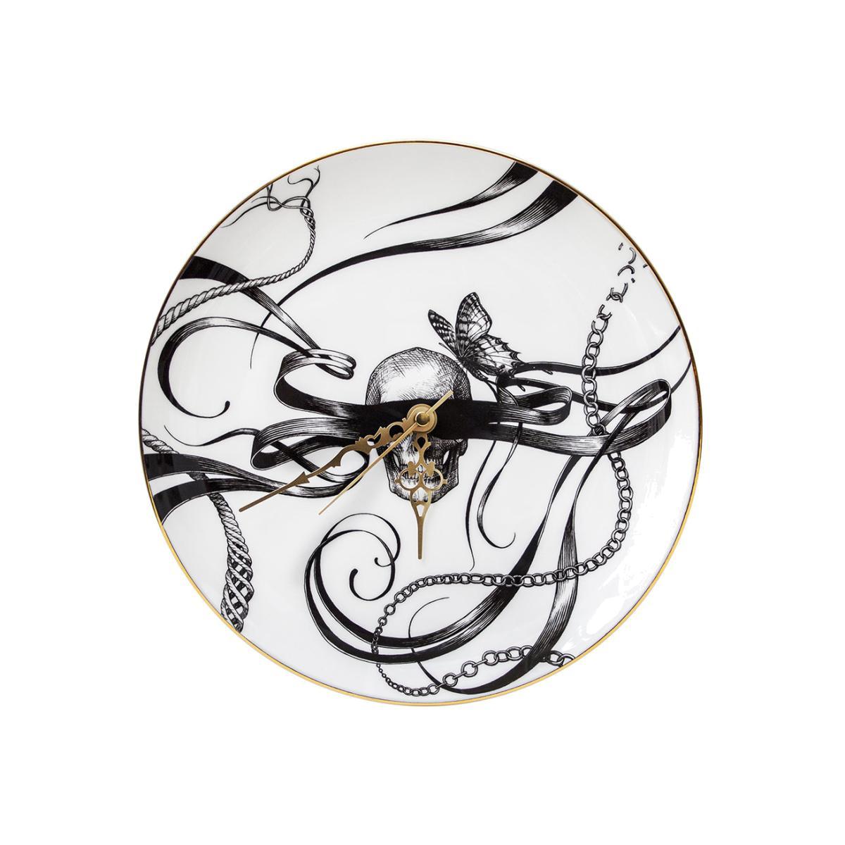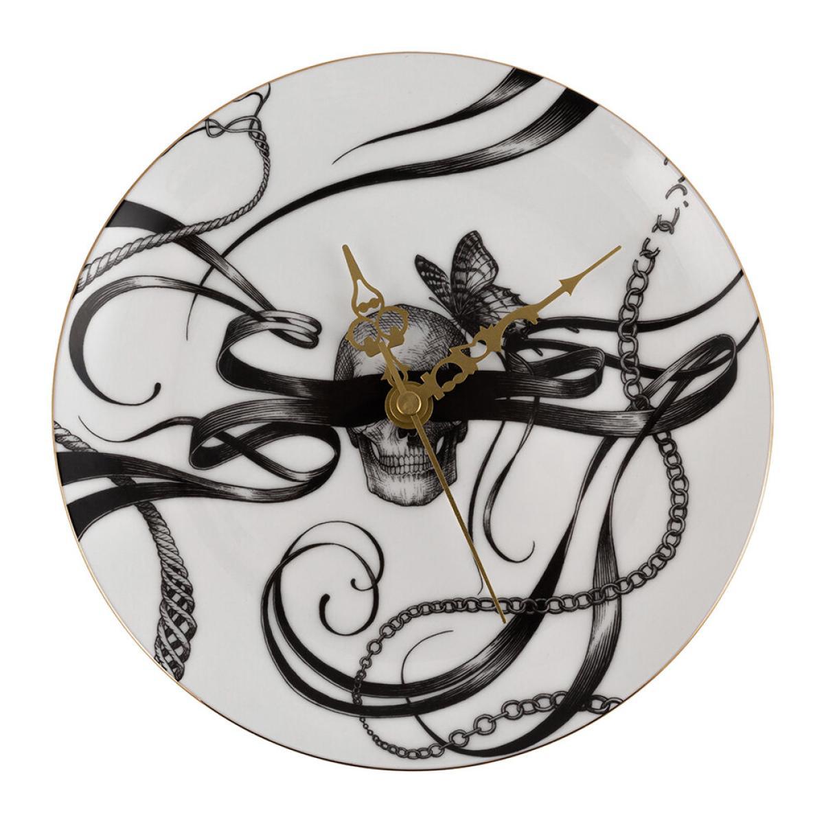 Create a statement in your home with this beautiful clock from Rory Dobner. Adorned with a skull and butterfly design, nestled amongst swirling ribbons in the artist’s distinctive black ink illustrative style, this clock looks perfect in a living area, dining room or hallway. Made in England from luxurious fine bone china with a hand painted 22 carat gold edge and finished with stunning brass mechanisms, this makes a fabulous gift for a special occasion.