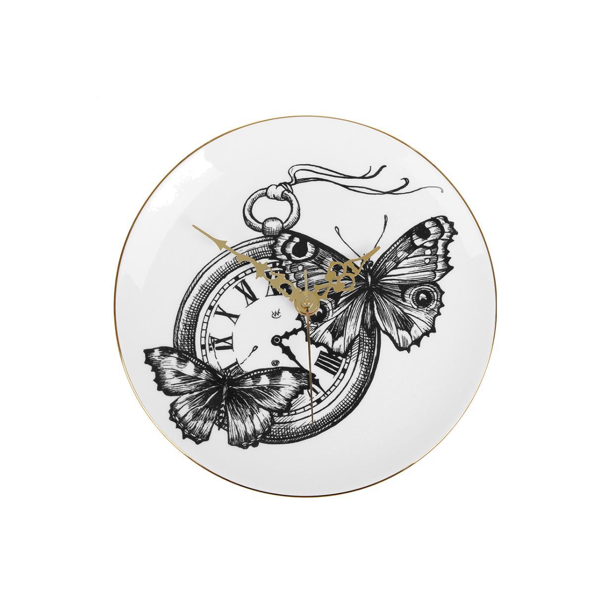 Update any room of the home with this indulgent clock from Rory Dobner. This charming clock features a pocket watch and butterfly design in the artist’s signature illustrated style, perfect for introducing unique art to your interior. Made in England from luxurious fine bone china with brass mechanisms and a hand painted 22 carat gold edge, this makes a fabulous gift idea for a special occasion.
