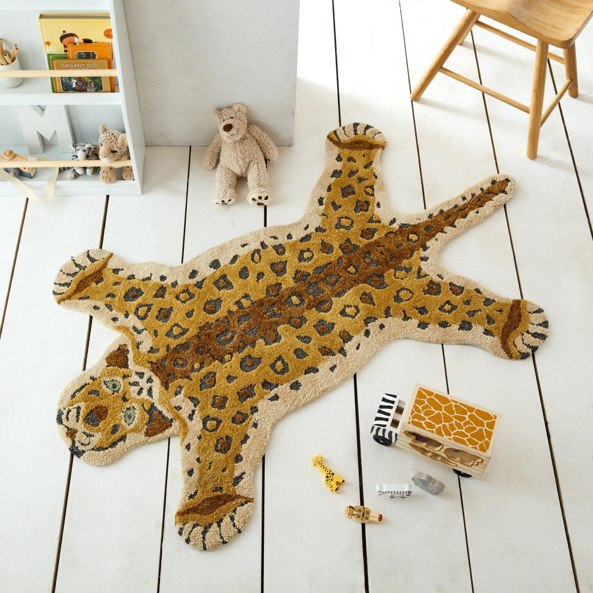 Spark your wild-child's imagination with the fun Rory Leopard Shaped Kids Rug. Designed with a playful Zebra profile in a shaggy cosy pile. Tufted in 100% polyester for enhanced durability, this children's rug is perfect for playtime. This rug is ideal for creating a statement spot in children's rooms and play areas. Don't forget to buy our handy anti-slip mat,. Here,. Available in a range of sizes. When opening, re-roll your rug pile out and leave in a warm room for 24 hours before putting in place, this will help to reduce wrinkles and curling from packing. A small amount of fibre loss is normal on a new rug. Do not pull any loose threads, please cut them carefully with scissors to remove. Avoid prolonged exposure to direct sunlight as this may cause fading of the colour. Turn your rug regularly to ensure even wear and reduce pressure marks from furniture. Before using any cleaning products on your rug, test on an inconspicuous area first to ensure it does not affect the colour. Clean spills immediately by blotting with a clean dry white cloth - do not rub as this may stain the fibres. Vacuum your rug regularly to remove everyday dirt, we recommend the use of a suction type vacuum cleaner as a rotating vacuum brush can cause damage to the pile surface. We recommend the use of an anti-slip mat beneath your rug to prevent it from slipping and sliding out of place. Latex is used on the back of this rug. Please do not leave babies or young children unsupervised on this rug.
