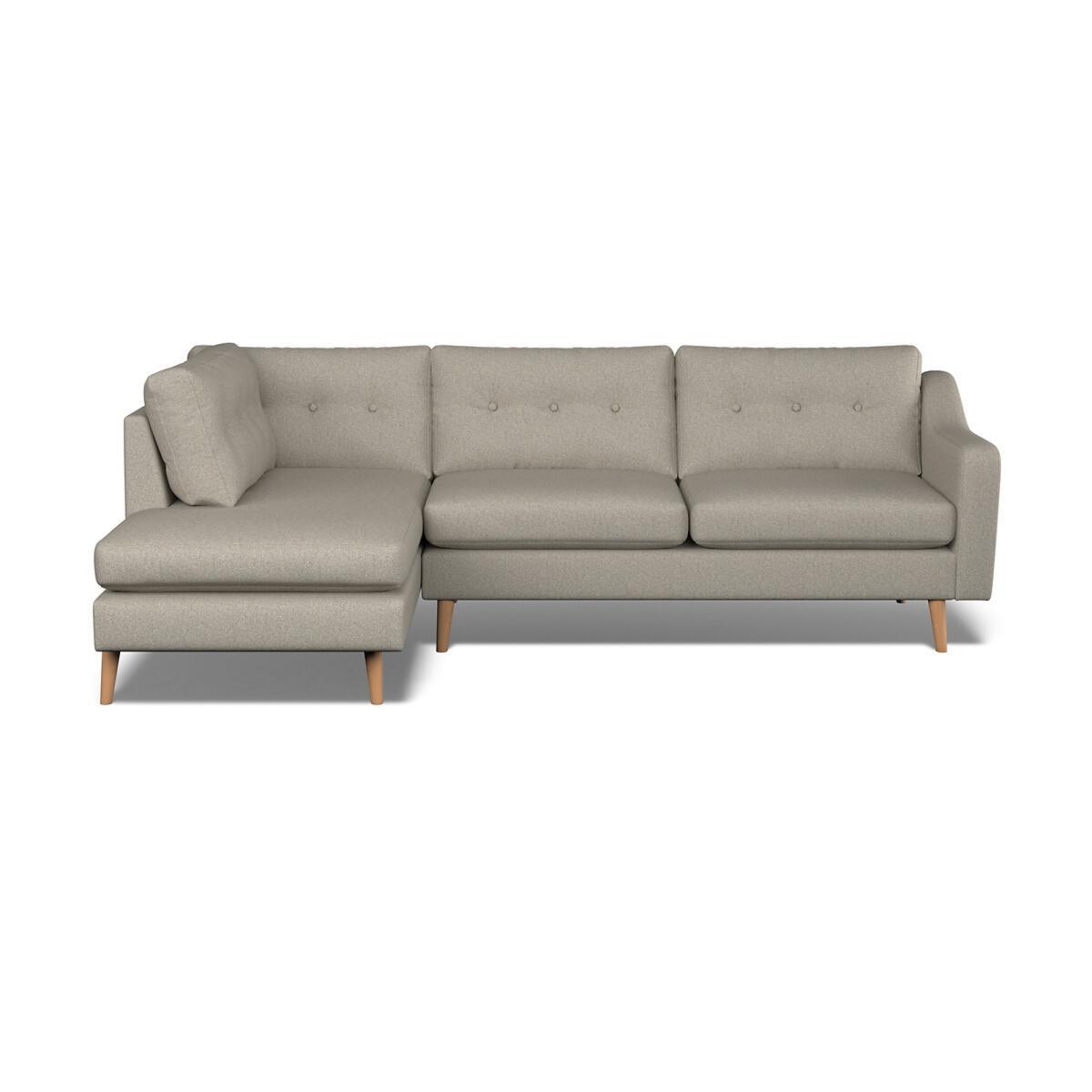 I love this corner sofa for its versatile style and soft, inviting fabric. The Rosa buttoned weave adds subtle texture, making it a great anchor piece in both contemporary and more traditional interiors. Its light wood legs bring warmth and a touch of Scandinavian simplicity, ideal for spaces aiming for a relaxed, airy feel. It works well in open-plan living rooms or cosy corner setups - just beware of clutter, as the light upholstery can show dirt more easily. For styling, pair it with neutral-toned throws and cushions for a clean look, or add colourful or patterned accessories to inject personality. Its left-facing design makes it perfect for creating cozy reading corners or entertaining zones against a wall or window.
