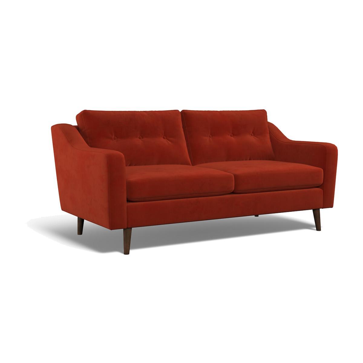 A timeless button back design, sloped arms and tapered wooden legs all make the Rosa a perfect example of Mid-century modern style. Reversible cushions with no plumping required, and a robust, tailored finish make this sofa perfect for family life. Choose from our soft brushed fabric for ultimate cosiness, soft woven for a textured look or velvet for luxe living. The Rosa is available in multiple sizes, including an armchair, a snuggle chair, a 2 seater, a 3 seater and a corner chaise sofa. The Rosa is also available with a plain back. Product details• Velvet - An elegant velvet with a dense and matte finish, perfect for those wanting a rich and luxurious look. A flat finish pile makes it difficult for the material to snag – ideal if you live with pets and sure to prove durable for years to come. Check it's right for you - order a FREE swatch above.• Created with medium density foam fillings for a sofa with a level of comfort suitable for most. • Foam filled seats provide great support without compromising on comfort, and require little maintenance to keep their shape, ensuring your sofa looks as good as it does the day you welcomed it into your living room.• Fibre backs provide extra softness and give you that "sink in" feeling.• Just flip to freshen up - both the seat cushions and back cushions are fully reversible so it's easy to keep your sofa looking its best.• Seat covers are removal (zip fastening). Back covers not removable due to button finishes. • FSC® solid beech hardwood frame - made of wood from responsibly managed forests that provide environmental, social and economic benefits.• Tapered feet crafted entirely from solid wood ensure durability and stability.• Removable feet.• Lovingly handmade in the UK.All our made to order sofas are carefully manufactured in the UK.Each hardwood frame is dowelled, glued, and screwed before being paired with the finest fabrics and fillings. And it doesn't stop there - for customer peace of mind and safety, all frames and fabrics are rigorously examined, inspected, and tested to the highest standards. All filling material(s) and covering fabric(s) meet the requirements for resistance to cigarette and match ignition in the 1988 safety regulations. This sofa comes with a 3 year manufacturer warranty from date of delivery (subject to terms and conditions)Product composition• Fabric - Velvet (100% polyester)• Seat Fillings - Foam and fibre• Back Fillings - Fibre• Frame - Beech Hardwood (FSC), OSB (UK origin, FSC)• Feet - Solid Wood. Product Dimensions Overall width: 197 cm. Overall depth: 98 cm. Overall height: 90 cm. Seat height: 50 cm. Seat depth: 58 cm. Seat width between the arms: 176 cm. Back height (from base): 72 cm. Back height (from seat): 45 cm. Arm height (from floor): 66 cm. Arm height (from seat): 16 cm Clearance to floor (leg height): 18 cm. Please remember to measure your available space before ordering to be sure your sofa will fit. Don't forget to measure accessways and corners, and consider any obstacles. Package DimensionsL19. 8 cm x W99 cm x H73 cm, Weight 55 kg. This product will be dispatched by one of our trusted suppliers. You’ll be contacted by their selected courier about your delivery. Your product will be delivered to your room of choice. Feet may be assembled on arrival. BELFI01