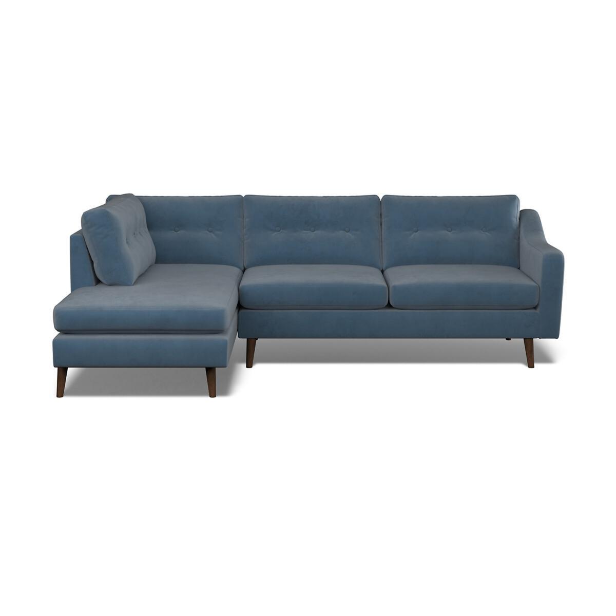 Put your feet up and S-T-R-E-T-C-H. The Rosa Buttoned combines modern family comfort with a timeless button back design. The long sloped arms and tapered wooden legs give a retro look that’s perfect for a contemporary home. If buttons aren’t your thing, the Rosa is also available with a standard back. Choose from our soft brushed fabric for ultimate coziness, soft woven for a textured look or velvet for luxe living. All made to order sofas are carefully manufactured in the UK.Each hardwood frame is dowelled, glued, and screwed before being paired with the finest fabrics and fillings. And it doesn't stop there - for customer peace of mind and safety, all frames and fabrics are rigorously examined, inspected, and tested to the highest standards. Product Specifications:. Product Dimensions: H 90cm x W 278cm x D 98/180cm. Fabric: Velvet - 100% Polyester. Feet: Dark Wood Packaged Dimensions: 181cmx155cmx73 - Please remember to measure your available space before ordering. The Rosa Range is also available in Velvet & Soft Brushed in a variety of colours. This product will be dispatched by one of our trusted suppliers. You’ll be contacted by their selected courier about your delivery. Your product will be delivered to your room of Choice. The feet for the product will be assembled once delivered.