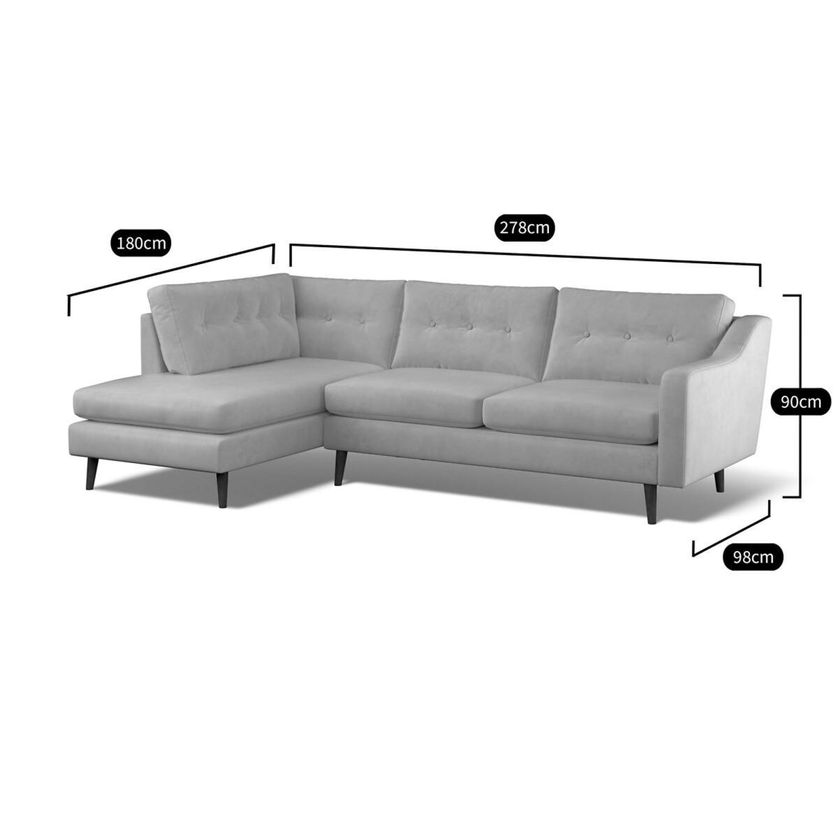 Put your feet up and S-T-R-E-T-C-H. The Rosa Buttoned combines modern family comfort with a timeless button back design. The long sloped arms and tapered wooden legs give a retro look that’s perfect for a contemporary home. If buttons aren’t your thing, the Rosa is also available with a standard back. Choose from our soft brushed fabric for ultimate coziness, soft woven for a textured look or velvet for luxe living. All made to order sofas are carefully manufactured in the UK.Each hardwood frame is dowelled, glued, and screwed before being paired with the finest fabrics and fillings. And it doesn't stop there - for customer peace of mind and safety, all frames and fabrics are rigorously examined, inspected, and tested to the highest standards. Product Specifications:. Product Dimensions: H 90cm x W 278cm x D 98/180cm. Fabric: Velvet - 100% Polyester. Feet: Light Wood Packaged Dimensions: 181cmx155cmx73 - Please remember to measure your available space before ordering. The Rosa Range is also available in Velvet & Soft Brushed in a variety of colours. This product will be dispatched by one of our trusted suppliers. You’ll be contacted by their selected courier about your delivery. Your product will be delivered to your room of Choice. The feet for the product will be assembled once delivered.