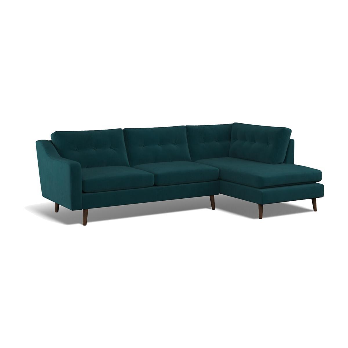 Put your feet up and S-T-R-E-T-C-H. The Rosa Buttoned combines modern family comfort with a timeless button back design. The long sloped arms and tapered wooden legs give a retro look that’s perfect for a contemporary home. If buttons aren’t your thing, the Rosa is also available with a standard back. Choose from our soft brushed fabric for ultimate coziness, soft woven for a textured look or velvet for luxe living. All made to order sofas are carefully manufactured in the UK.Each hardwood frame is dowelled, glued, and screwed before being paired with the finest fabrics and fillings. And it doesn't stop there - for customer peace of mind and safety, all frames and fabrics are rigorously examined, inspected, and tested to the highest standards. Product Specifications:. Product Dimensions: H 90cm x W 278cm x D 98/180cm. Fabric: Velvet - 100% Polyester. Feet: Dark Wood Packaged Dimensions: 181cmx155cmx73 - Please remember to measure your available space before ordering. The Rosa Range is also available in Velvet & Soft Brushed in a variety of colours. This product will be dispatched by one of our trusted suppliers. You’ll be contacted by their selected courier about your delivery. Your product will be delivered to your room of Choice. The feet for the product will be assembled once delivered.