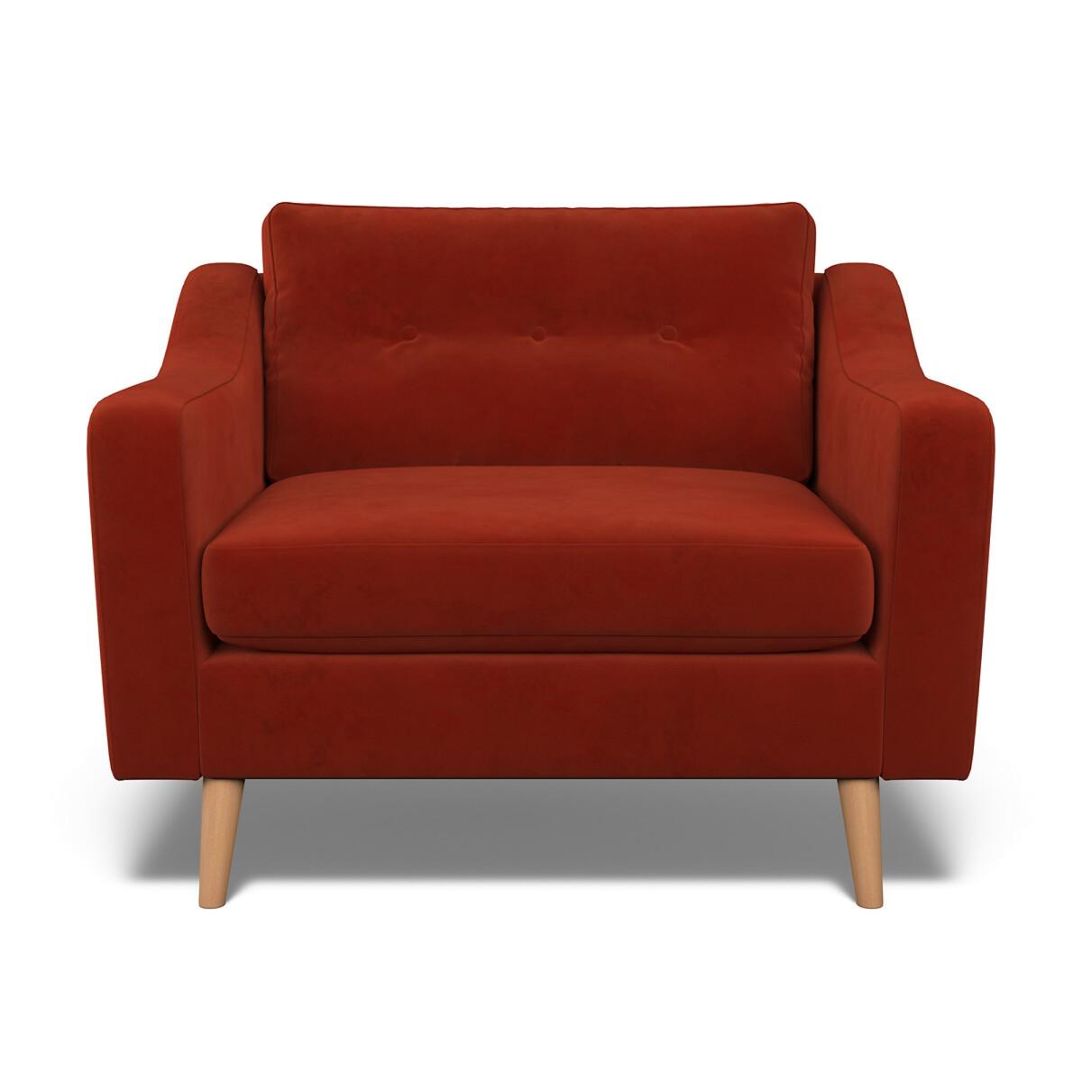 Deliciously spacious for 1. The Rosa Buttoned combines modern family comfort with a timeless button back design. The long sloped arms and tapered wooden legs give a retro look that’s perfect for a contemporary home. If buttons aren’t your thing, the Rosa is also available with a standard back. Choose from our soft brushed fabric for ultimate coziness, soft woven for a textured look or velvet for luxe living. All made to order sofas are carefully manufactured in the UK.Each hardwood frame is dowelled, glued, and screwed before being paired with the finest fabrics and fillings. And it doesn't stop there - for customer peace of mind and safety, all frames and fabrics are rigorously examined, inspected, and tested to the highest standards. Product Specifications:. Product Dimensions: H 90cm x W 115cm x D 98cm. Fabric: Velvet - 100% Polyester. Feet: Light Wood Packaged Dimensions: 116cmx91cmx73 - Please remember to measure your available space before ordering. The Rosa Range is also available in Velvet & Soft Brushed in a variety of colours. This product will be dispatched by one of our trusted suppliers. You’ll be contacted by their selected courier about your delivery. Your product will be delivered to your room of Choice. The feet for the product will be assembled once delivered.