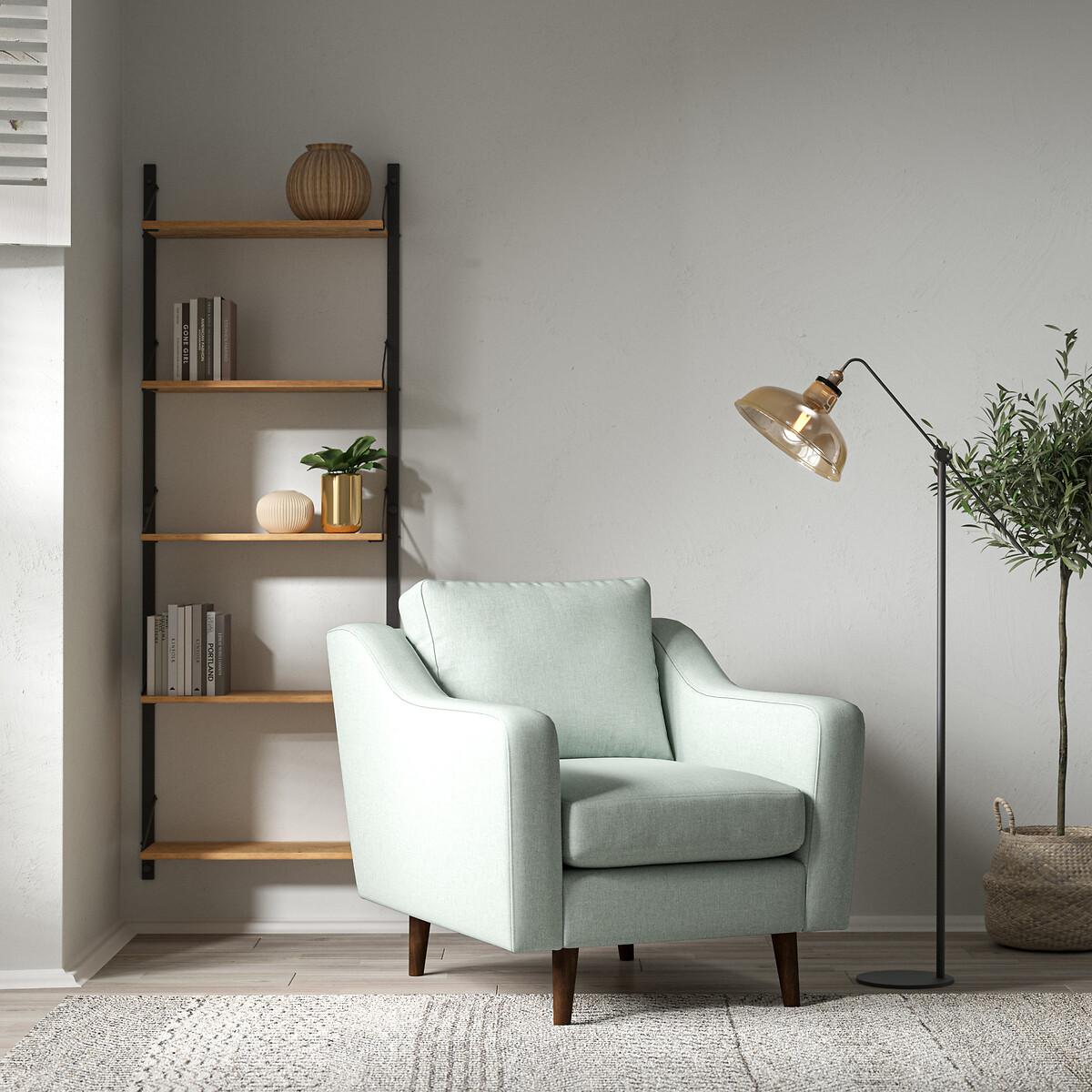 Sloped arms and tapered wooden legs all make the Rosa a perfect example of Mid-century modern style. Reversible cushions with no plumping required, and a robust, tailored finish make this armchair perfect for family life. Choose from our soft brushed fabric for ultimate cosiness, soft woven for a textured look or velvet for luxe living. The Rosa is available in multiple sizes, including an armchair, a snuggle chair, a 2 seater, a 3 seater and a corner chaise sofa. The Rosa is also available with a buttoned back. Product details• Soft Brushed - A cosy and practical flat woven fabric featuring a subtle brushed handle for a superbly snuggly seat. Check it's right for you - order a FREE swatch above.• Created with medium density foam fillings for a sofa with a level of comfort suitable for most. • Foam filled seats provide great support without compromising on comfort, and require little maintenance to keep their shape, ensuring your sofa looks as good as it does the day you welcomed it into your living room.• Fibre backs provide extra softness and give you that "sink in" feeling.• Just flip to freshen up - both the seat cushions and back cushions are fully reversible so it's easy to keep your sofa looking its best.• Both seat and back covers are removable (zip fastening)• FSC® solid beech hardwood frame - made of wood from responsibly managed forests that provide environmental, social and economic benefits.• Tapered feet crafted entirely from solid wood ensure durability and stability.• Removable feet.• Lovingly handmade in the UK.All our made to order sofas are carefully manufactured in the UK.Each hardwood frame is dowelled, glued, and screwed before being paired with the finest fabrics and fillings. And it doesn't stop there - for customer peace of mind and safety, all frames and fabrics are rigorously examined, inspected, and tested to the highest standards. All filling material(s) and covering fabric(s) meet the requirements for resistance to cigarette and match ignition in the 1988 safety regulations. This sofa comes with a 3 year manufacturer warranty from date of delivery (subject to terms and conditions)Product composition• Fabric - Soft Brushed (100% polyester)• Seat Fillings - Foam and fibre• Back Fillings - Fibre• Frame - Beech Hardwood (FSC), OSB (UK origin, FSC)• Feet - Solid Wood. Product Dimensions Overall width: 89 cm. Overall depth: 98 cm. Overall height: 90 cm. Seat height: 50 cm. Seat depth: 58 cm. Seat width between the arms: 68 cm. Back height (from base): 72 cm. Back height (from seat): 45 cm. Arm height (from floor): 66 cm. Arm height (from seat): 16 cm Clearance to floor (leg height): 18 cm. Please remember to measure your available space before ordering to be sure your sofa will fit. Don't forget to measure accessways and corners, and consider any obstacles. Package DimensionsL9. 1 cm x W82 cm x H73 cm, Weight 37.5 kg. This product will be dispatched by one of our trusted suppliers. You’ll be contacted by their selected courier about your delivery. Your product will be delivered to your room of choice. Feet may be assembled on arrival. BELFI01