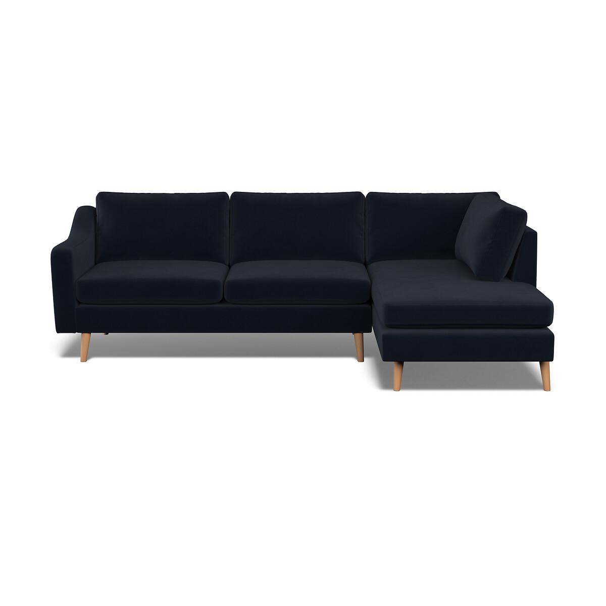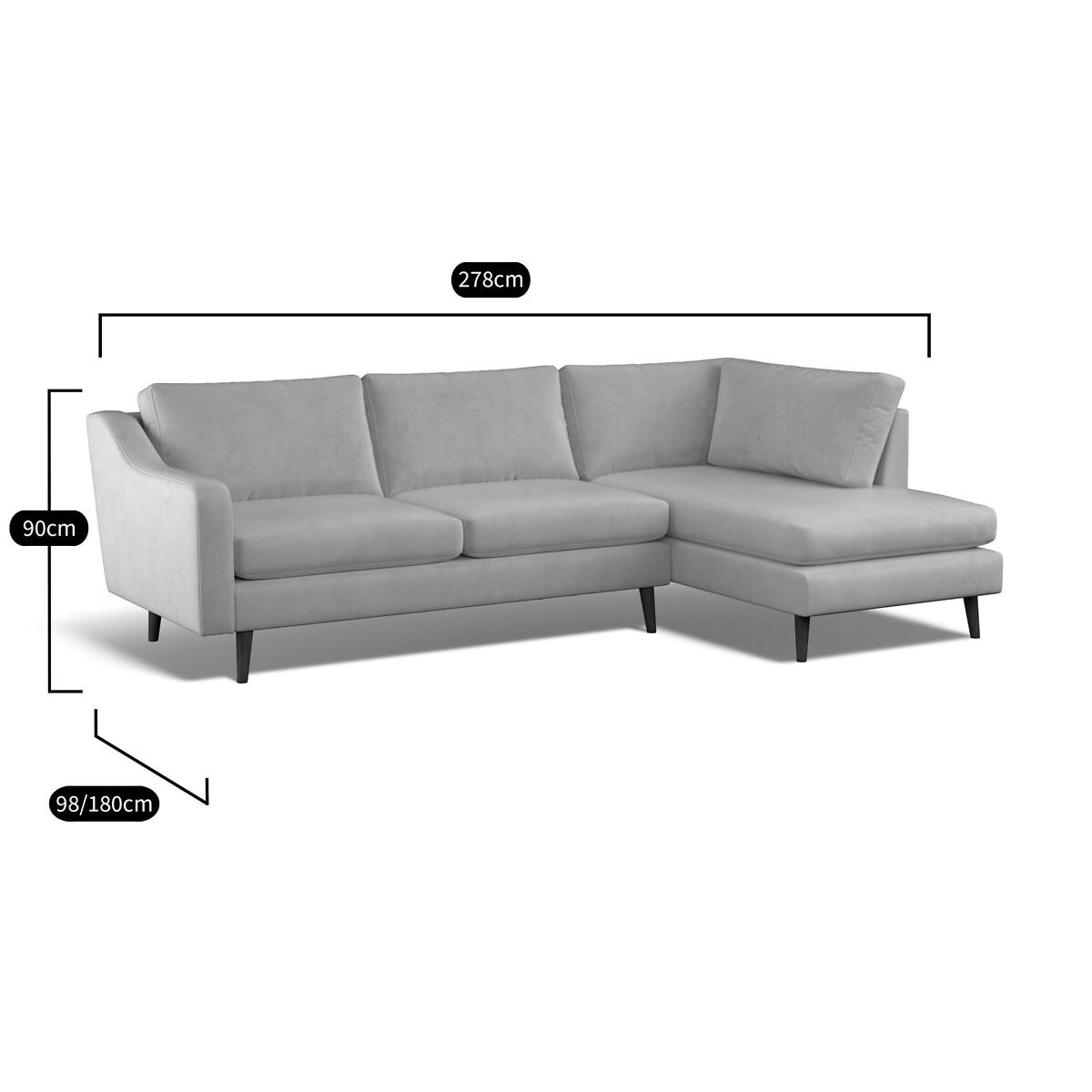 Put your feet up and S-T-R-E-T-C-H. Sloped arms and tapered wooden legs all make the Rosa a perfect example of Mid-century modern style. Reversible cushions with no plumping required, and a robust, tailored finish make this sofa perfect for family life. Choose from our soft brushed fabric for ultimate cosiness, soft woven for a textured look or velvet for luxe living. The Rosa is available in multiple sizes, including an armchair, a snuggle chair, a 2 seater, a 3 seater and a corner chaise sofa. The Rosa is also available with a buttoned back. Product details• Velvet - An elegant velvet with a dense and matte finish, perfect for those wanting a rich and luxurious look. A flat finish pile makes it difficult for the material to snag – ideal if you live with pets and sure to prove durable for years to come. Check it's right for you - order a FREE swatch above.• Created with medium density foam fillings for a sofa with a level of comfort suitable for most. • Foam filled seats provide great support without compromising on comfort, and require little maintenance to keep their shape, ensuring your sofa looks as good as it does the day you welcomed it into your living room.• Fibre backs provide extra softness and give you that "sink in" feeling.• Just flip to freshen up - both the seat cushions and back cushions are fully reversible so it's easy to keep your sofa looking its best.• Both seat and back covers are removable (zip fastening)• FSC® solid beech hardwood frame - made of wood from responsibly managed forests that provide environmental, social and economic benefits.• Tapered feet crafted entirely from solid wood ensure durability and stability.• Removable feet.• Lovingly handmade in the UK.All our made to order sofas are carefully manufactured in the UK.Each hardwood frame is dowelled, glued, and screwed before being paired with the finest fabrics and fillings. And it doesn't stop there - for customer peace of mind and safety, all frames and fabrics are rigorously examined, inspected, and tested to the highest standards. All filling material(s) and covering fabric(s) meet the requirements for resistance to cigarette and match ignition in the 1988 safety regulations. This sofa comes with a 3 year manufacturer warranty from date of delivery (subject to terms and conditions)Product composition• Fabric - Velvet (100% polyester)• Seat Fillings - Foam and fibre• Back Fillings - Fibre• Frame - Beech Hardwood (FSC), OSB (UK origin, FSC)• Feet - Solid Wood. Product Dimensions Overall width: 278 cm. Overall depth: 98/180cm. Overall height: 90 cm. Seat height: 50 cm. Seat depth: 58 cm. Seat width between the arms: 257 cm. Back height (from base): 72 cm. Back height (from seat): 45 cm. Arm height (from floor): 66 cm. Arm height (from seat): 16 cm Clearance to floor (leg height): 18 cm. Please remember to measure your available space before ordering to be sure your sofa will fit. Don't forget to measure accessways and corners, and consider any obstacles. Package DimensionsL18. 1 cm x W155 cm x H73 cm, Weight 86 kg. This product will be dispatched by one of our trusted suppliers. You’ll be contacted by their selected courier about your delivery. Your product will be delivered to your room of choice. Feet may be assembled on arrival. BELFI01