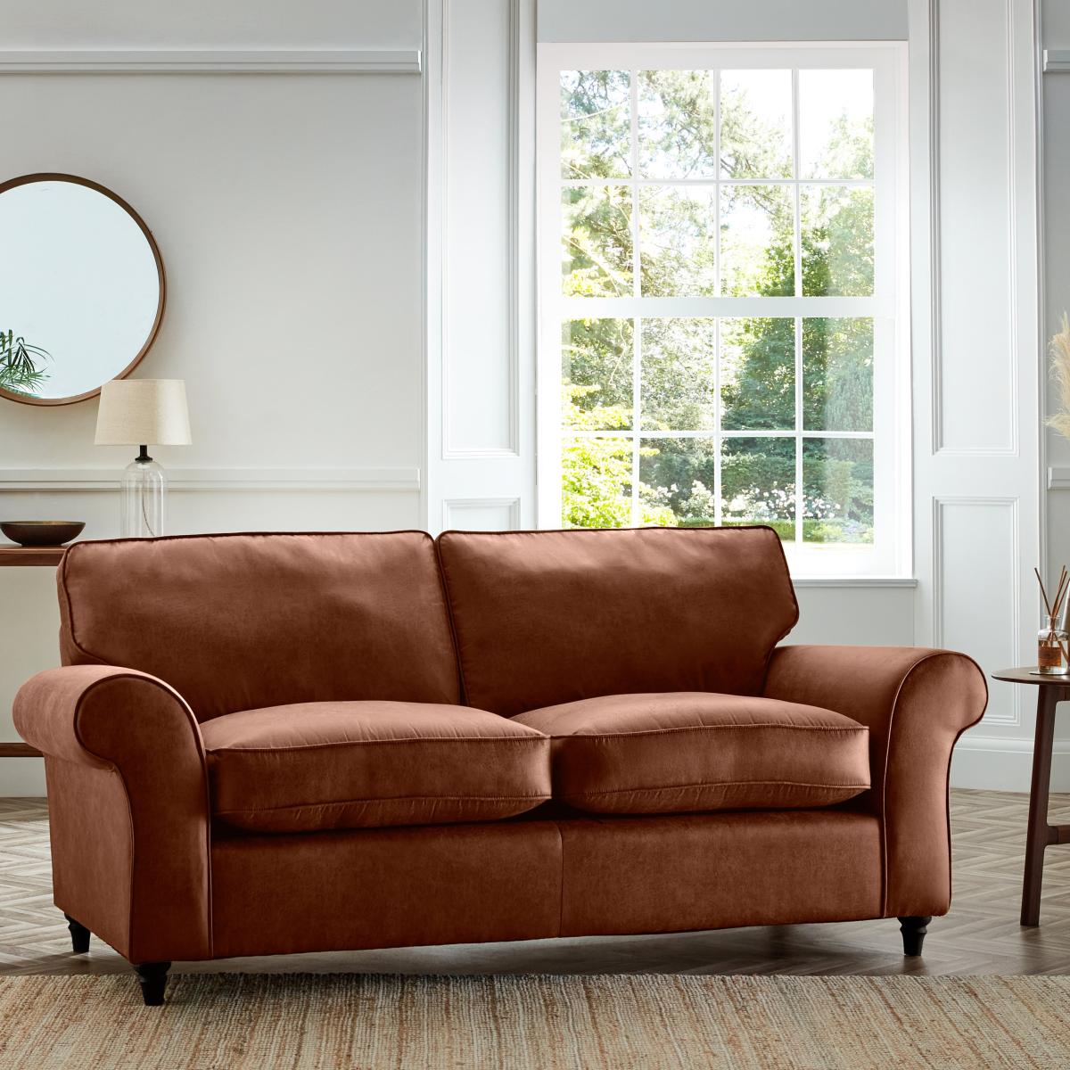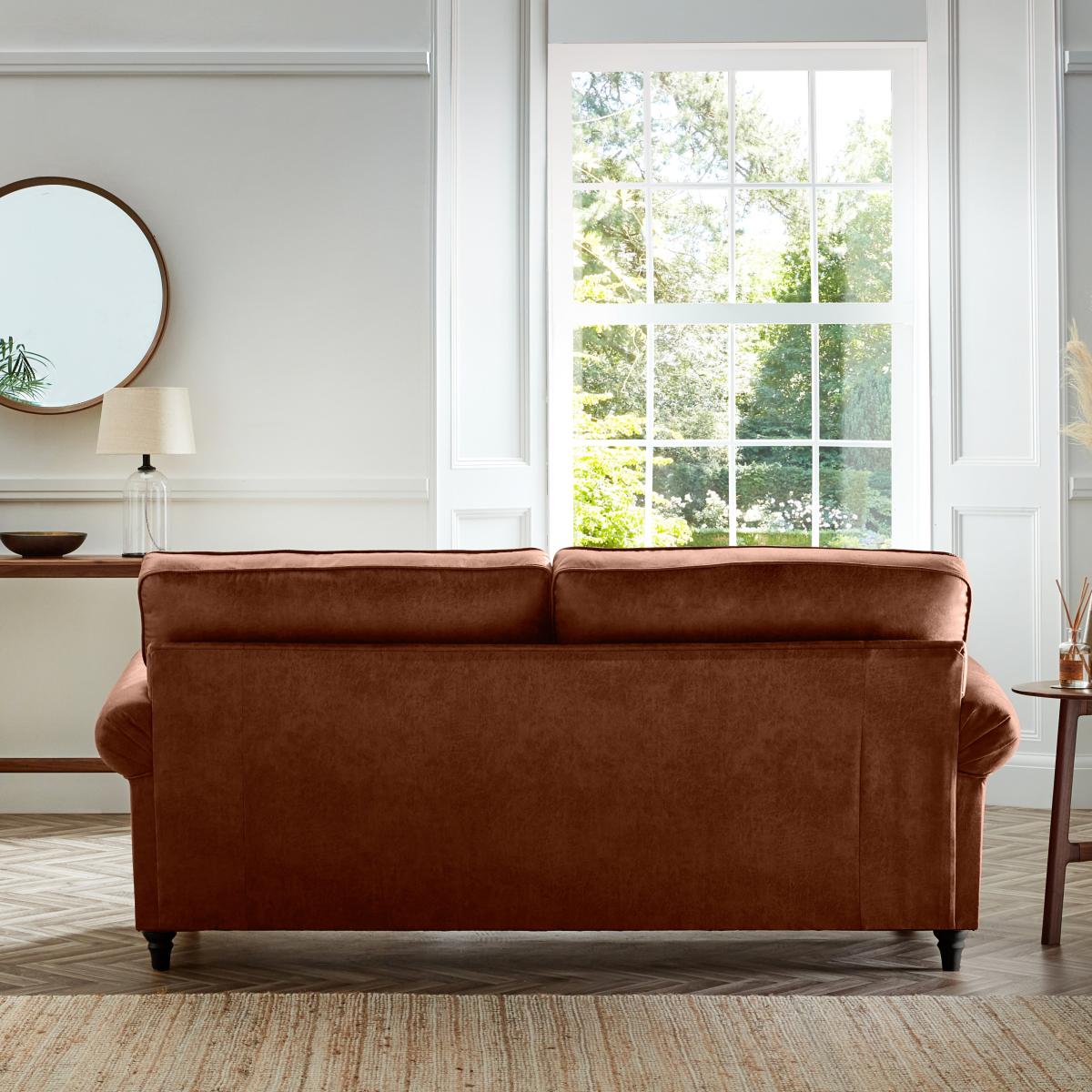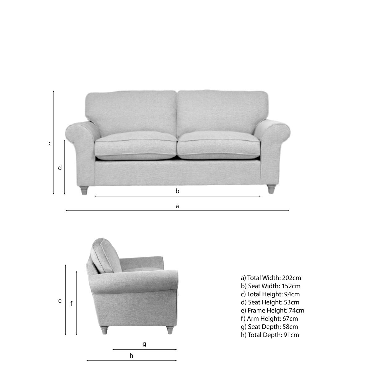 Made with a classic scroll arm design and plump fibre cushions, this sofa provides a luxurious seating experience for both you and your guests. Sink into its softness and experience the ultimate in relaxation. The enduring charm of classic design is beautifully encapsulated in this 3 seater sofa, making it a focal point in any living room, enhancing both style and comfort.