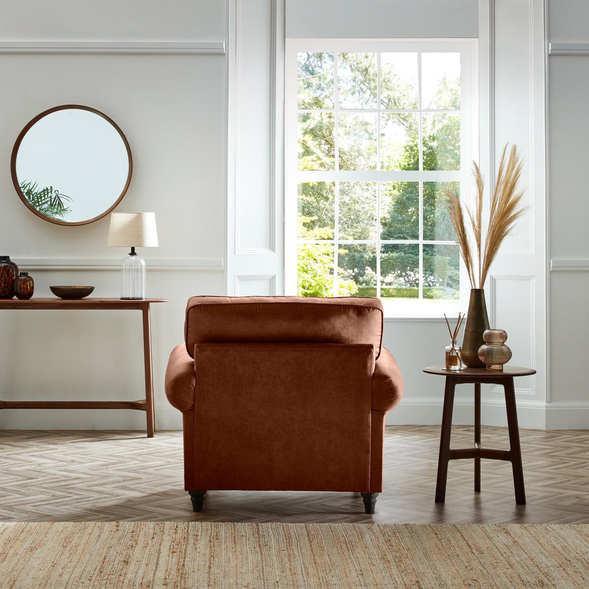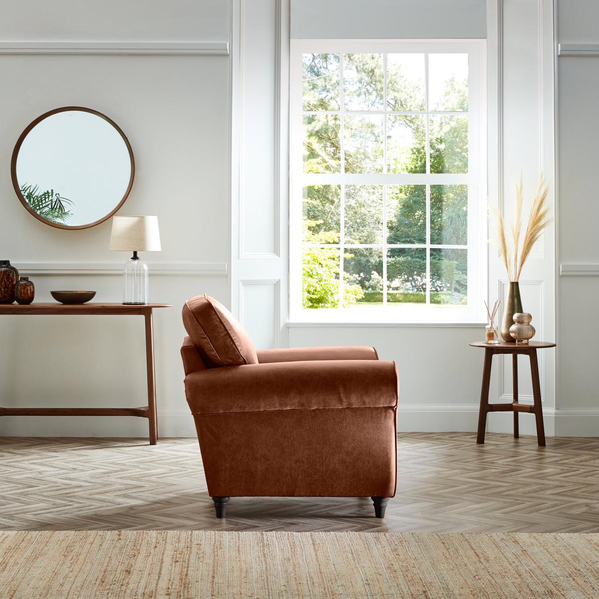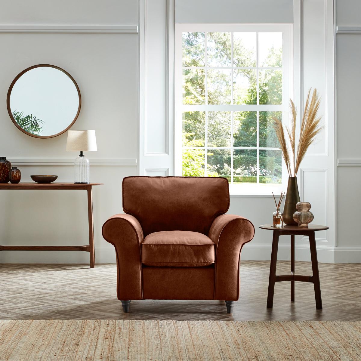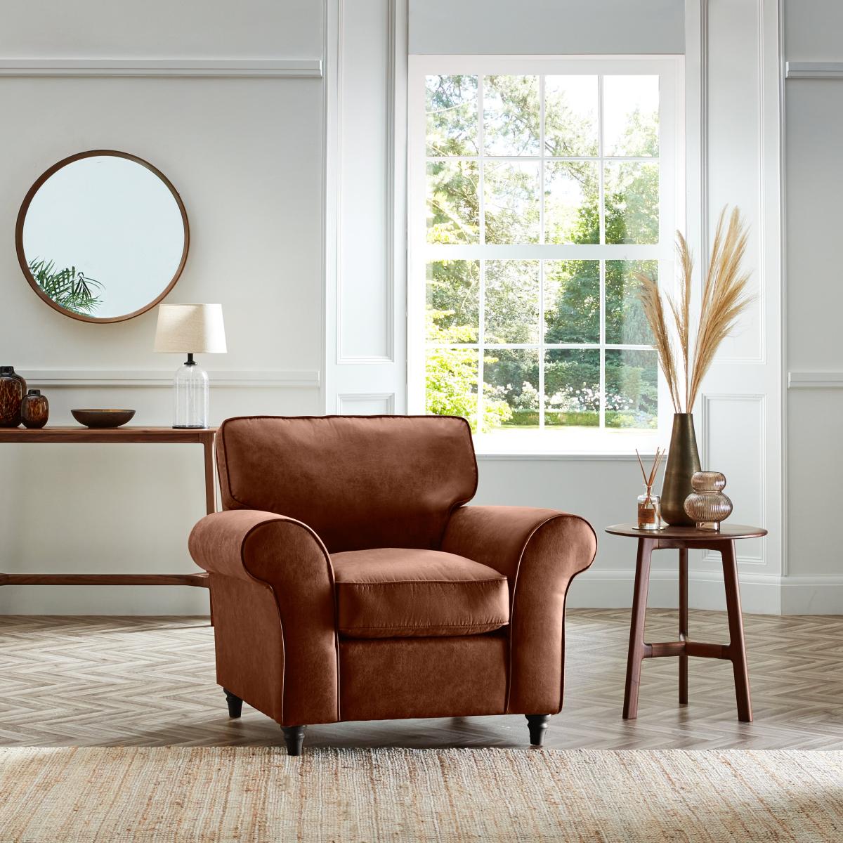 I love the Rosa faux leather armchair because it combines practicality with classic style. Its rich chocolate hue makes it a versatile piece that works particularly well in cosy, traditional interiors or even modern schemes that aim for warm accents. The soft faux leather finish gives it a slightly relaxed yet polished vibe, making it perfect for both lounging and more styled settings. To maximise its appeal, try pairing it with textured throws or cushions in complementary tones such as warm neutrals or deep jewel colours. It also works well as a statement piece in a reading nook or as part of a living room arrangement, bringing comfort and a touch of sophistication to any space.