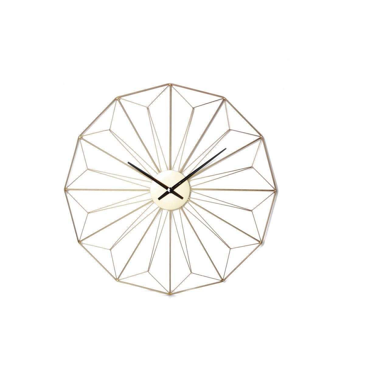 Practical yet beautiful, this statement wall clock channels an Art Deco style, perfect for elevating the kitchen, dining or living room with a touch of luxe. Why you’ll love it. Unusual Art Deco design. Easy-to-read contrast of black and gold. One-metre diameter makes it a significant wall feature. Adds a luxury statement. Crafted with care for Furniture Village. What you need to know. Interlocking metal construction. Easy to hang on the wall. Weighs just 4kg. Dimensions. Height: 100cm (39.4 in). Width: 100cm (39.4 in).