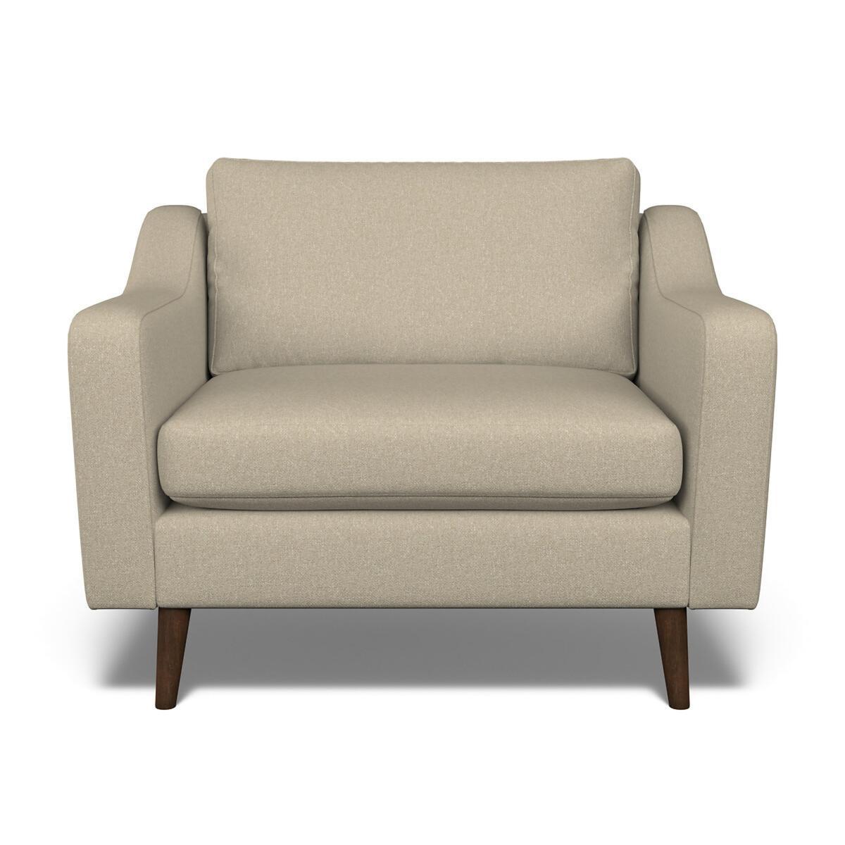 Deliciously spacious for 1. The Rosa combines modern family comfort with a timeless design. The long sloped arms and tapered wood legs give a retro look that’s perfect for a contemporary home. If buttons are your thing, the Rosa is also available with a buttoned back. Choose from our soft brushed fabric for ultimate coziness, soft woven for a textured look or velvet for luxe living. All made to order sofas are carefully manufactured in the UK.Each hardwood frame is dowelled, glued, and screwed before being paired with the finest fabrics and fillings. And it doesn't stop there - for customer peace of mind and safety, all frames and fabrics are rigorously examined, inspected, and tested to the highest standards. Product Specifications:. Product Dimensions: H 90cm x W 115cm x D 98cm. Fabric: Soft Woven - 100% Polyester. Feet: Dark Wood Packaged Dimensions: 116cmx91cmx73 - Please remember to measure your available space before ordering. The Rosa Range is also available in Velvet & Soft Brushed in a variety of colours. This product will be dispatched by one of our trusted suppliers. You’ll be contacted by their selected courier about your delivery. Your product will be delivered to your room of Choice. The feet for the product will be assembled once delivered.