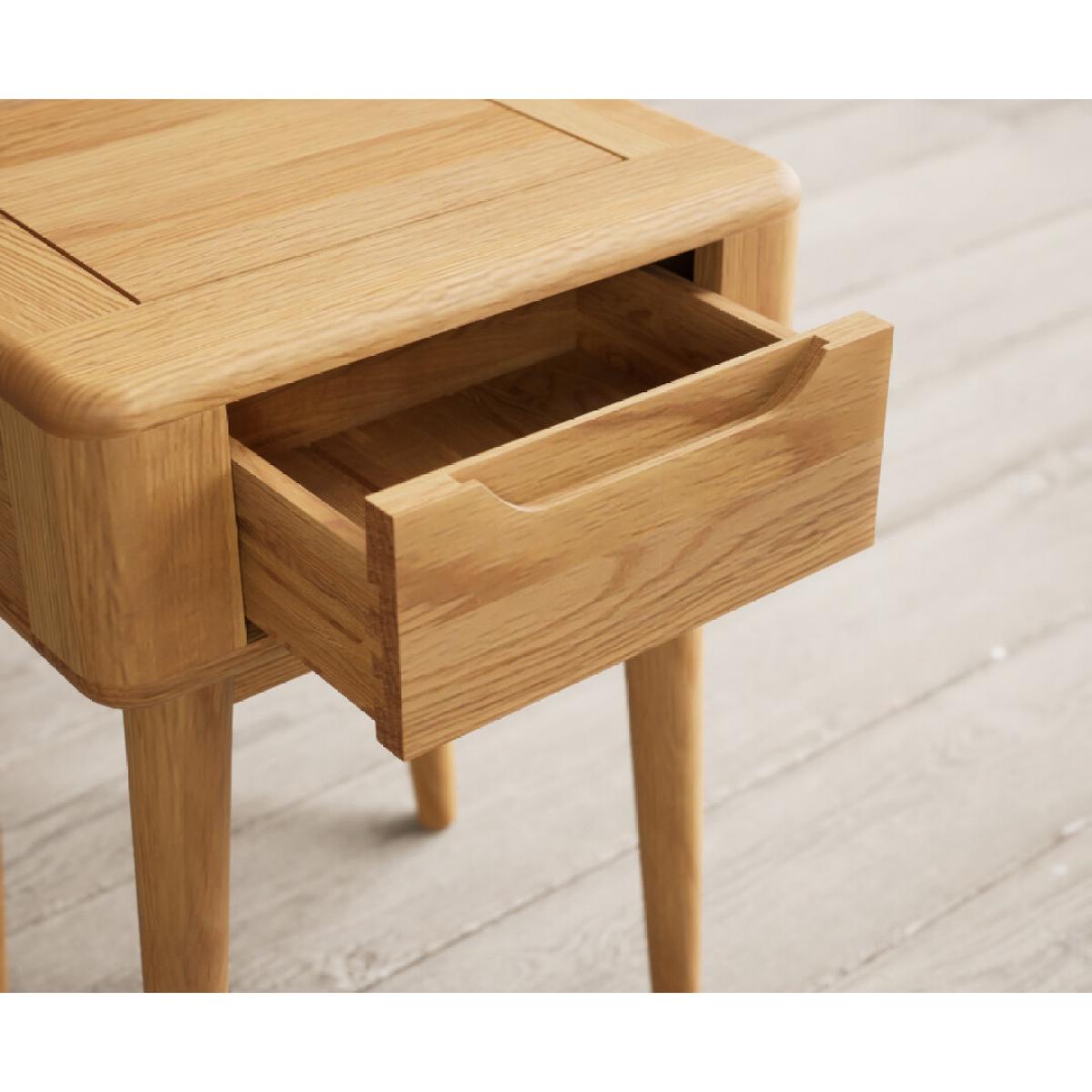 I’m a fan of this oak bedside for its clean lines and warm grain - ideal in Scandi, mid-century or contemporary rooms. The compact drawer keeps night-time essentials tucked away, while the raised legs give it an airy feel. Styling tip: pair with a slim-profile lamp, a small stack of books and a single ceramic vase or pot plant to keep the look simple but layered. It also works well against muted wall colours or alongside a textured rug for subtle contrast.