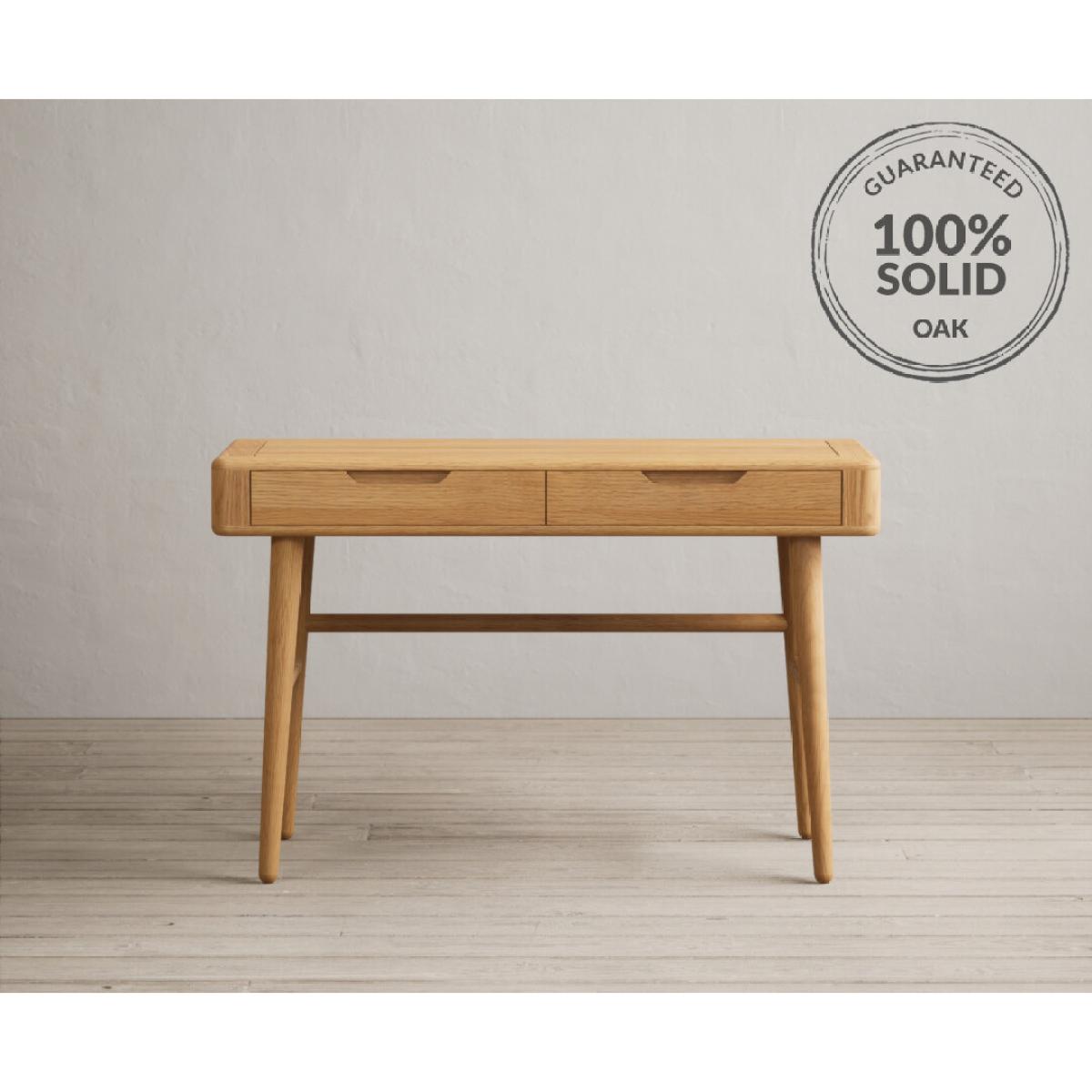 I’m a fan of this oak desk for its clean lines and solid timber build - it instantly brings warmth without feeling bulky. It slots straight into Scandi, Japandi or pared-back contemporary schemes, and the gently tapered legs give it a subtle mid-century nod. Styling-wise, keep the desktop clear of clutter: a simple task lamp, a low-profile monitor and a small cluster of personal items in a woven tray will suffice. Introduce texture with a leather-seat desk chair or a muted rug beneath, and hide cables behind or under the desk to maintain the crisp, organised look.
