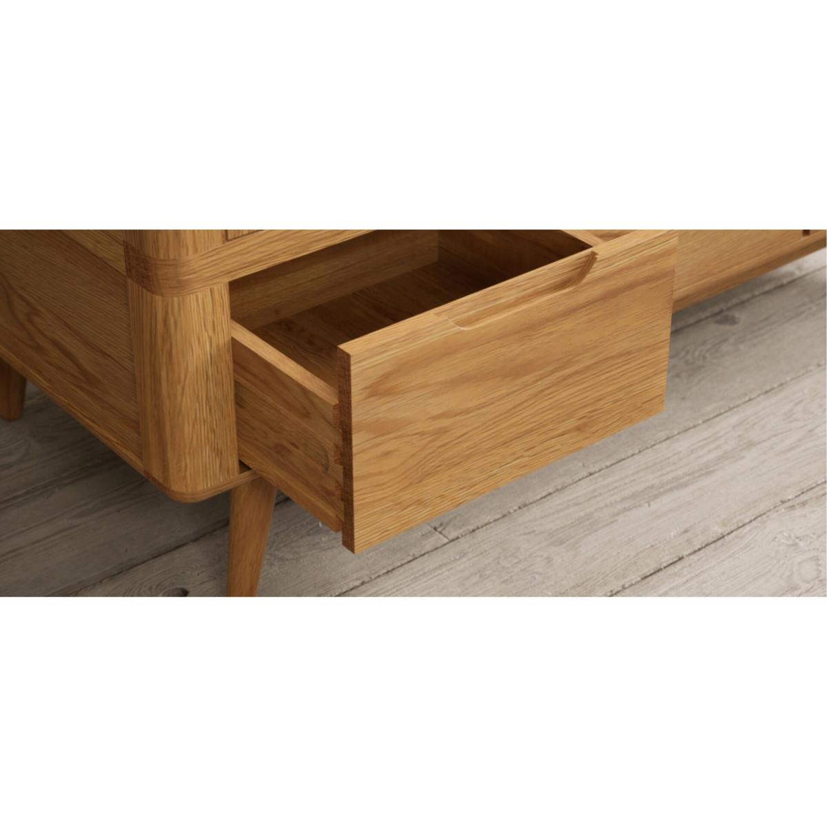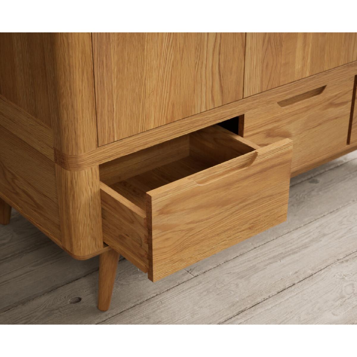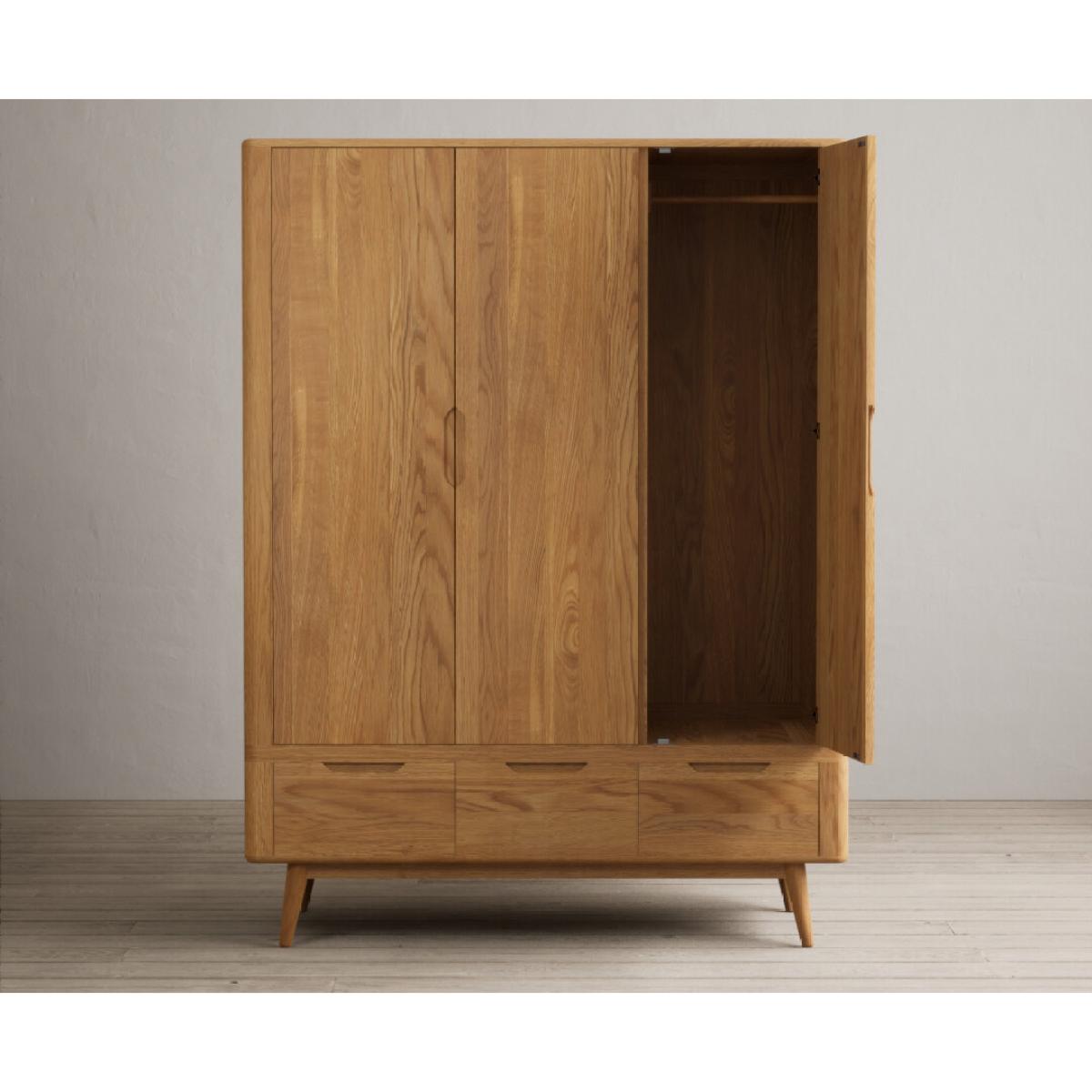 I love this oak triple wardrobe for its clean lines and natural warmth - it slots straight into Scandi, mid-century or modern farmhouse schemes without overwhelming the space. The combination of three full-height doors and lower drawers gives plenty of scope to organise clothing and accessories. For styling, keep internal fittings simple with slimline hangers and woven baskets to maximise storage. On top, limit décor to a low-profile plant or one framed print to maintain the piece’s uncluttered look, and echo the wood tone with a neutral rug or cushions elsewhere in the room.