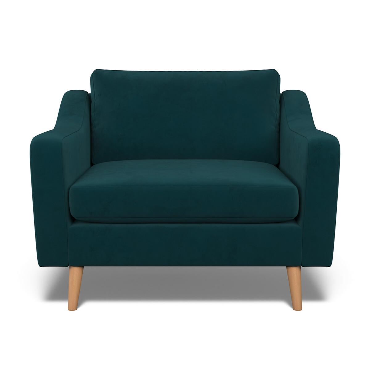 Deliciously spacious for 1. The Rosa combines modern family comfort with a timeless design. The long sloped arms and tapered wood legs give a retro look that’s perfect for a contemporary home. If buttons are your thing, the Rosa is also available with a buttoned back. Choose from our soft brushed fabric for ultimate coziness, soft woven for a textured look or velvet for luxe living. All made to order sofas are carefully manufactured in the UK.Each hardwood frame is dowelled, glued, and screwed before being paired with the finest fabrics and fillings. And it doesn't stop there - for customer peace of mind and safety, all frames and fabrics are rigorously examined, inspected, and tested to the highest standards. Product Specifications:. Product Dimensions: H 90cm x W 115cm x D 98cm. Fabric: Velvet - 100% Polyester. Feet: Light Wood Packaged Dimensions: 116cmx91cmx73 - Please remember to measure your available space before ordering. The Rosa Range is also available in Velvet & Soft Brushed in a variety of colours. This product will be dispatched by one of our trusted suppliers. You’ll be contacted by their selected courier about your delivery. Your product will be delivered to your room of Choice. The feet for the product will be assembled once delivered.