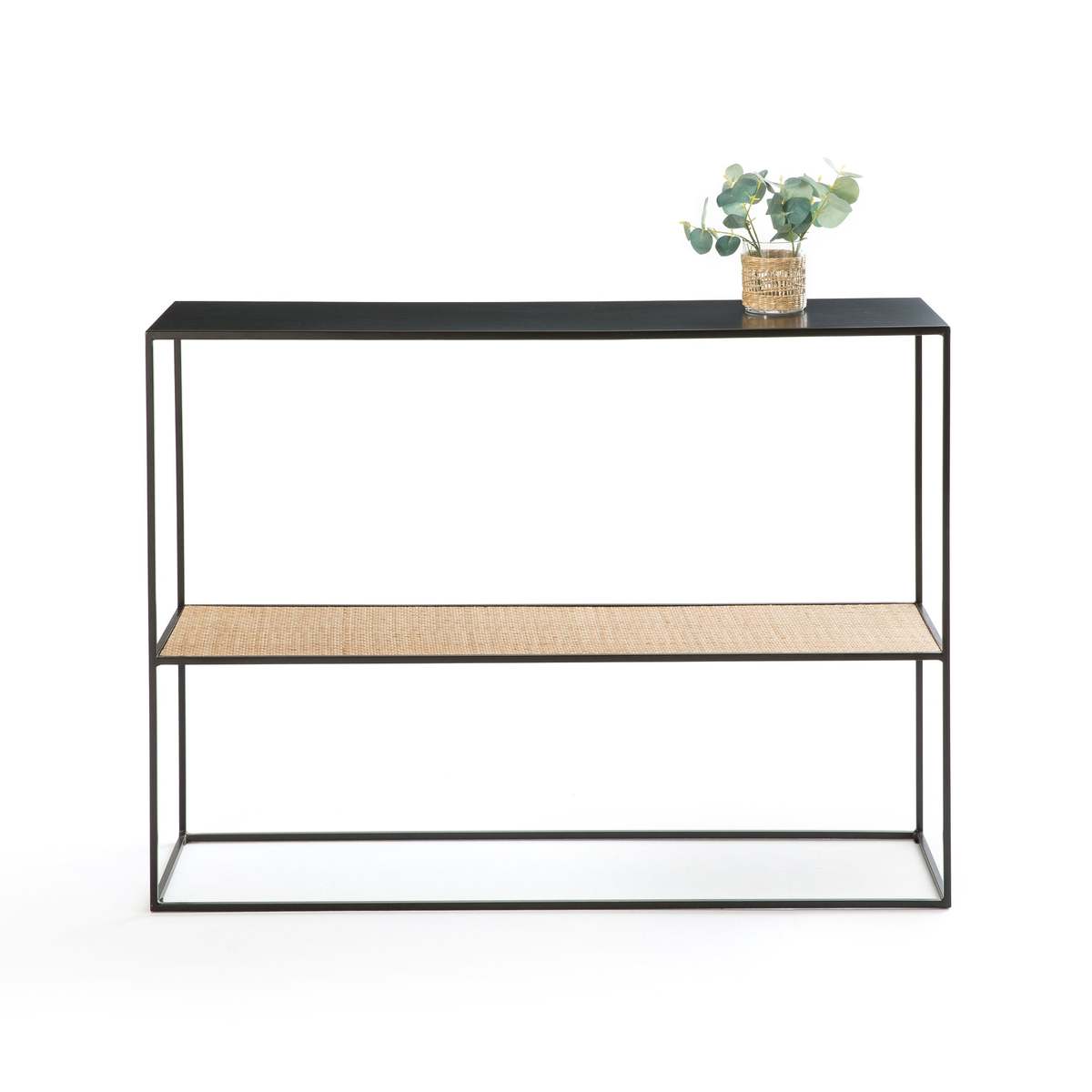 I really like this console because of its sleek metal frame paired with the cane shelf, which introduces a lovely mix of textures that works well in both modern and traditional spaces. It’s versatile enough to serve as an entryway feature, a sideboard in a living room, or even an elegant display piece behind a sofa. To style it effectively, I’d suggest keeping the top surface minimal with a few carefully chosen accessories like a vase or lamp, while the cane shelf lends itself to housing baskets or books for practical organisation. Its open design helps small spaces feel less crowded, and the neutral tones mean it can effortlessly complement a wide colour palette.